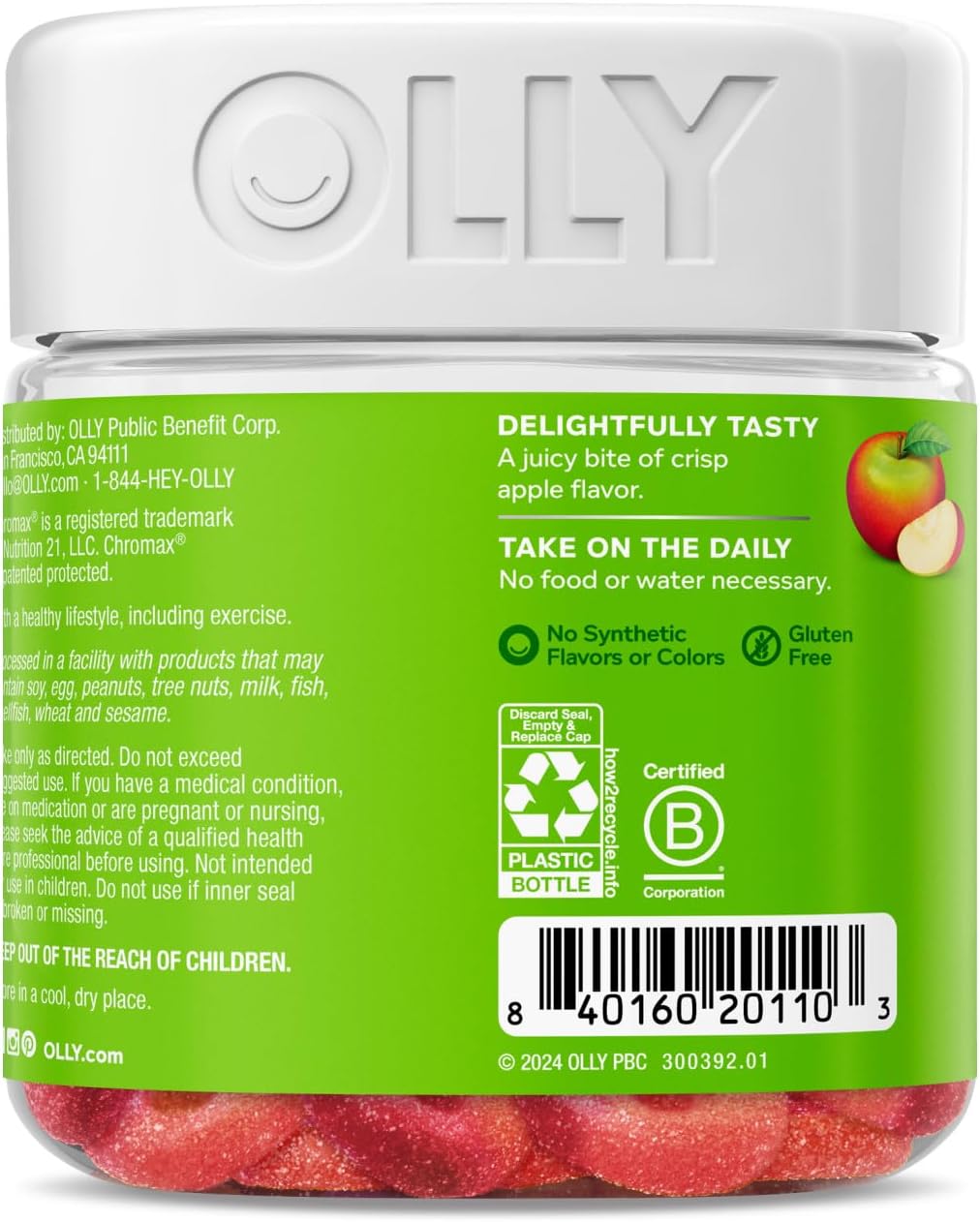 OLLY Metabolsim Gummy rings are formulated with goodness to promote cellular energy and a happy, healthy metabolism.* They’re expertly blended with Chromium Picolinate, a clinically-studied amount that supports lean body mass‡ and helps boost metabolism, Vitamin B12 for cellular energy production and Apple Cider Vinegar with the Mother. The gummy rings come in a super delicious Snappy Apple flavor with other natural flavors, so you get Apple Cider Vinegar without having to drink it. No synthetic flavors or colors, and they’re gluten-free. Adults, take 1 gummy per day. Chew thoroughly before swallowing.* At OLLY, good health is at the center of everything we do. We create delightful vitamins and supplements with real-deal benefits that help you live Happy Inside Out. ‡With a healthy lifestyle, including exercise. *These statements have not been evaluated by the Food and Drug Administration. This product is not intended to diagnose, treat, cure or prevent any disease.