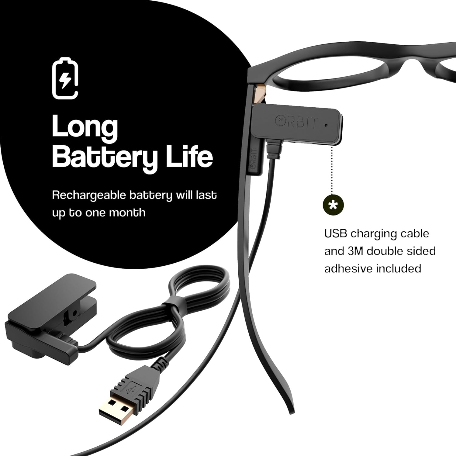 Long-Lasting Battery Life: Enjoy up to a month of battery life on a single charge, minimizing the need for frequent recharging. Easily recharge your Orbit Glasses using the included USB cable, ensuring they are always ready when you need them.