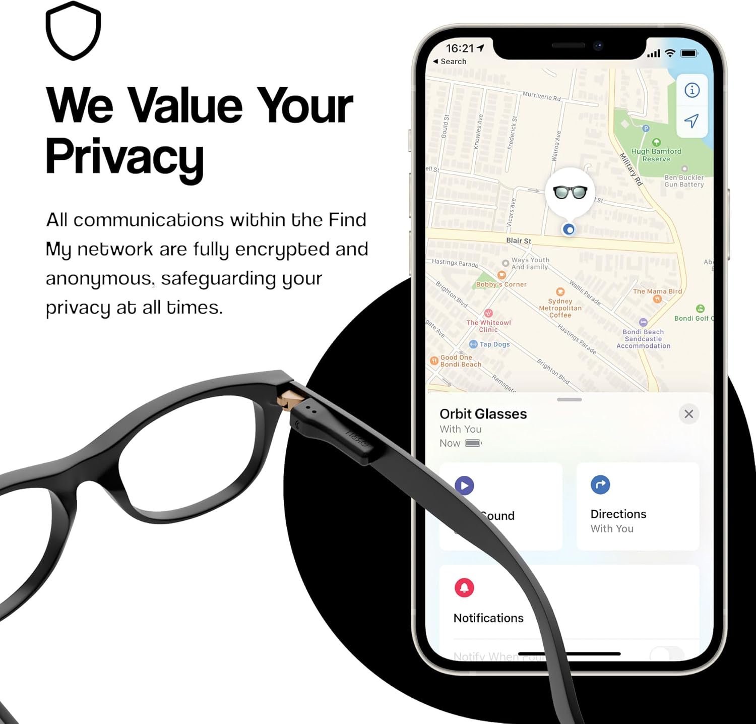 iCloud Syncing: Synchronize effortlessly with your iOS devices, ensuring your glasses’ location is always up to date across all your Apple products.