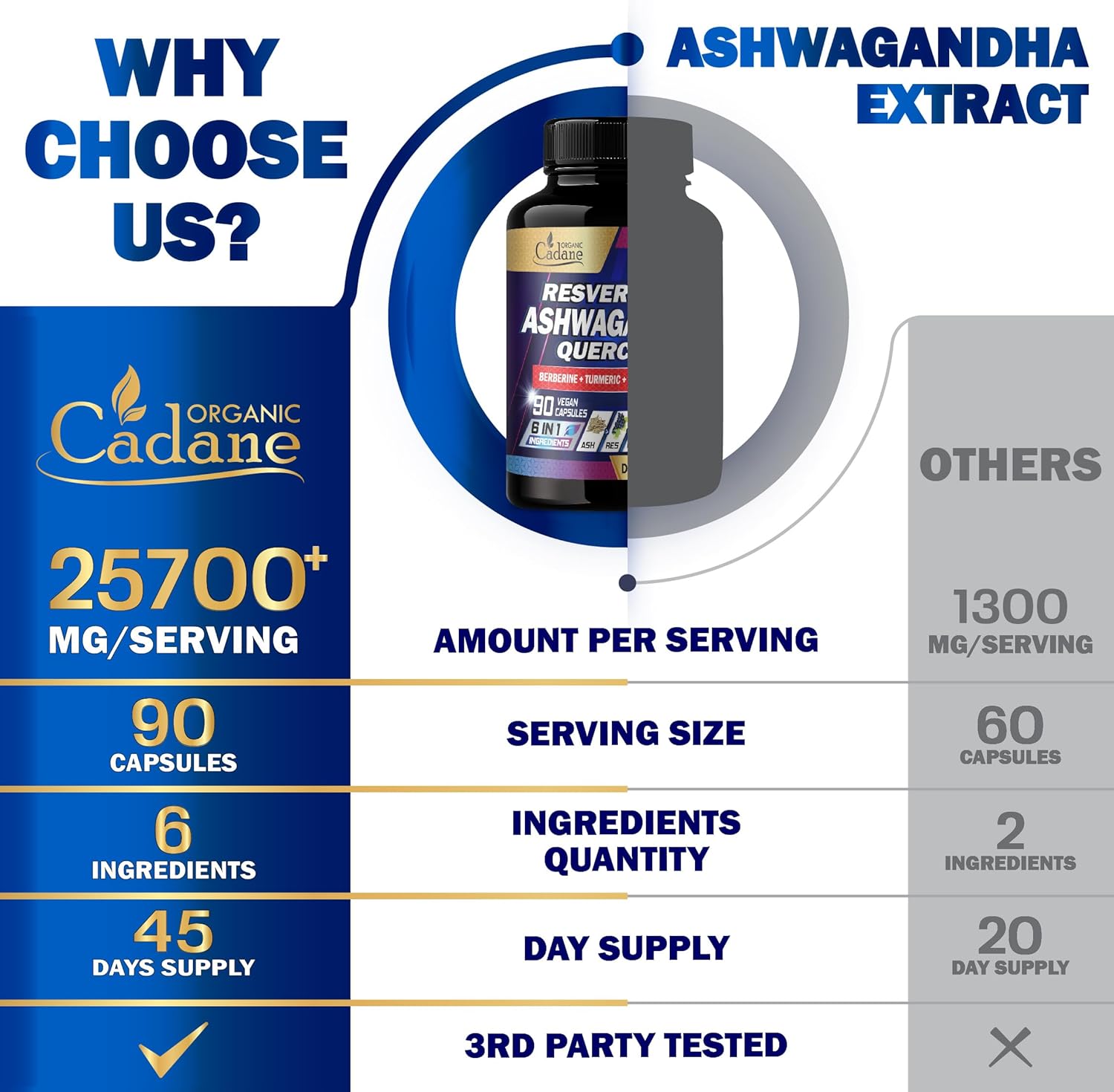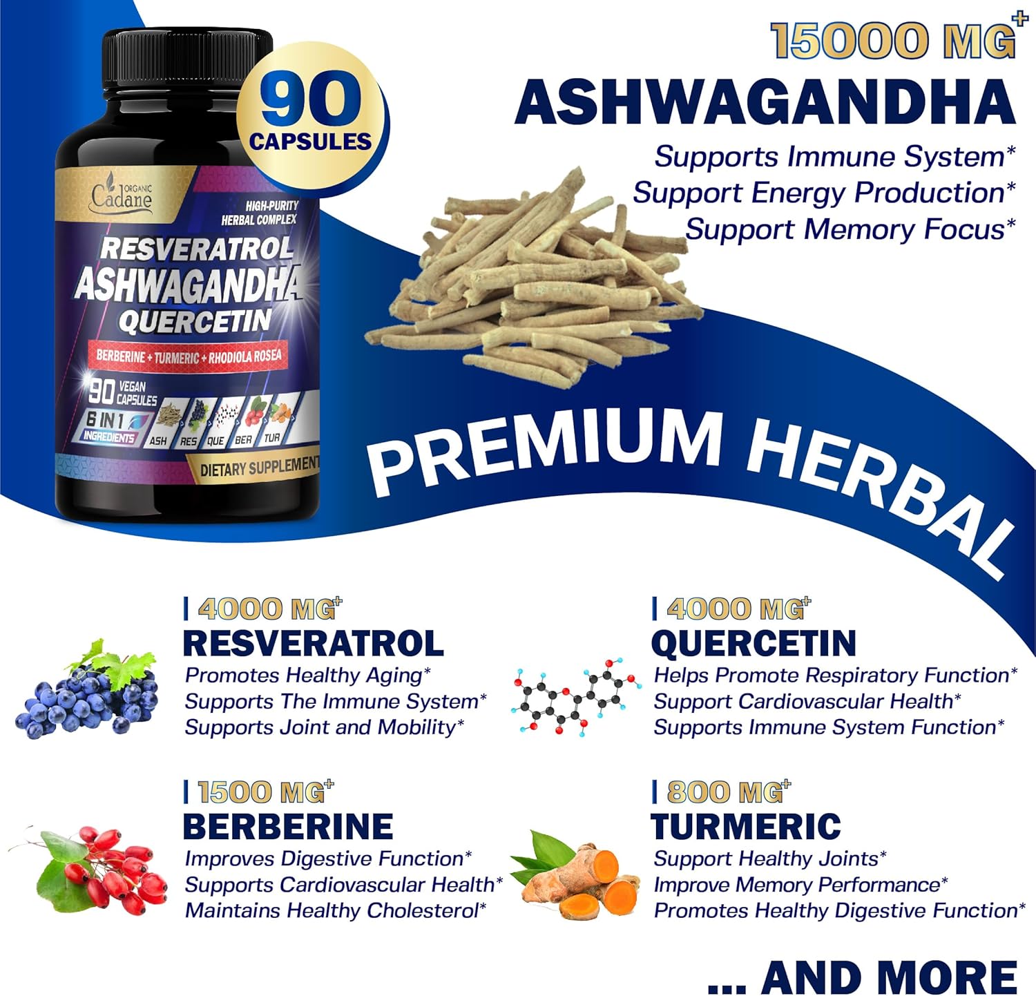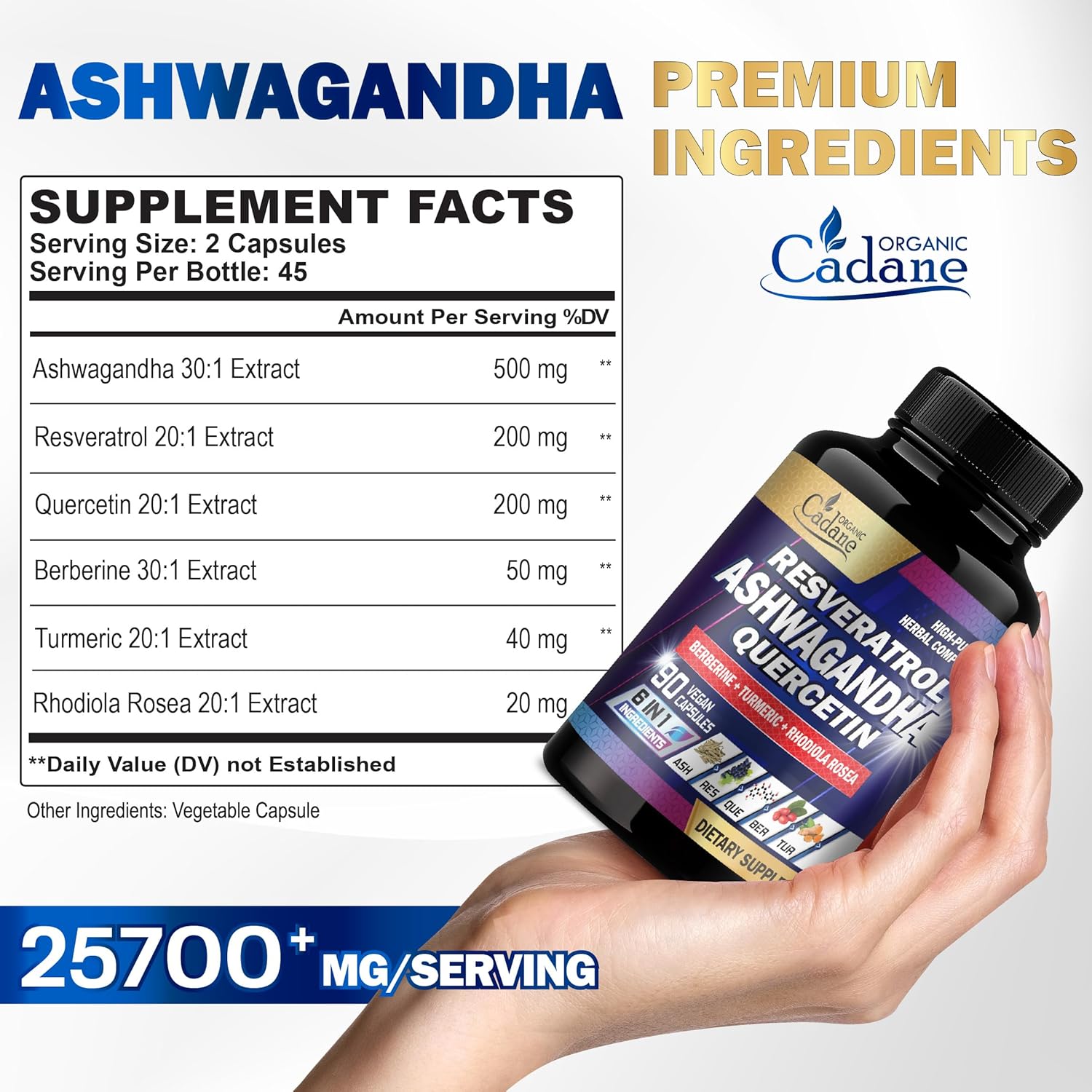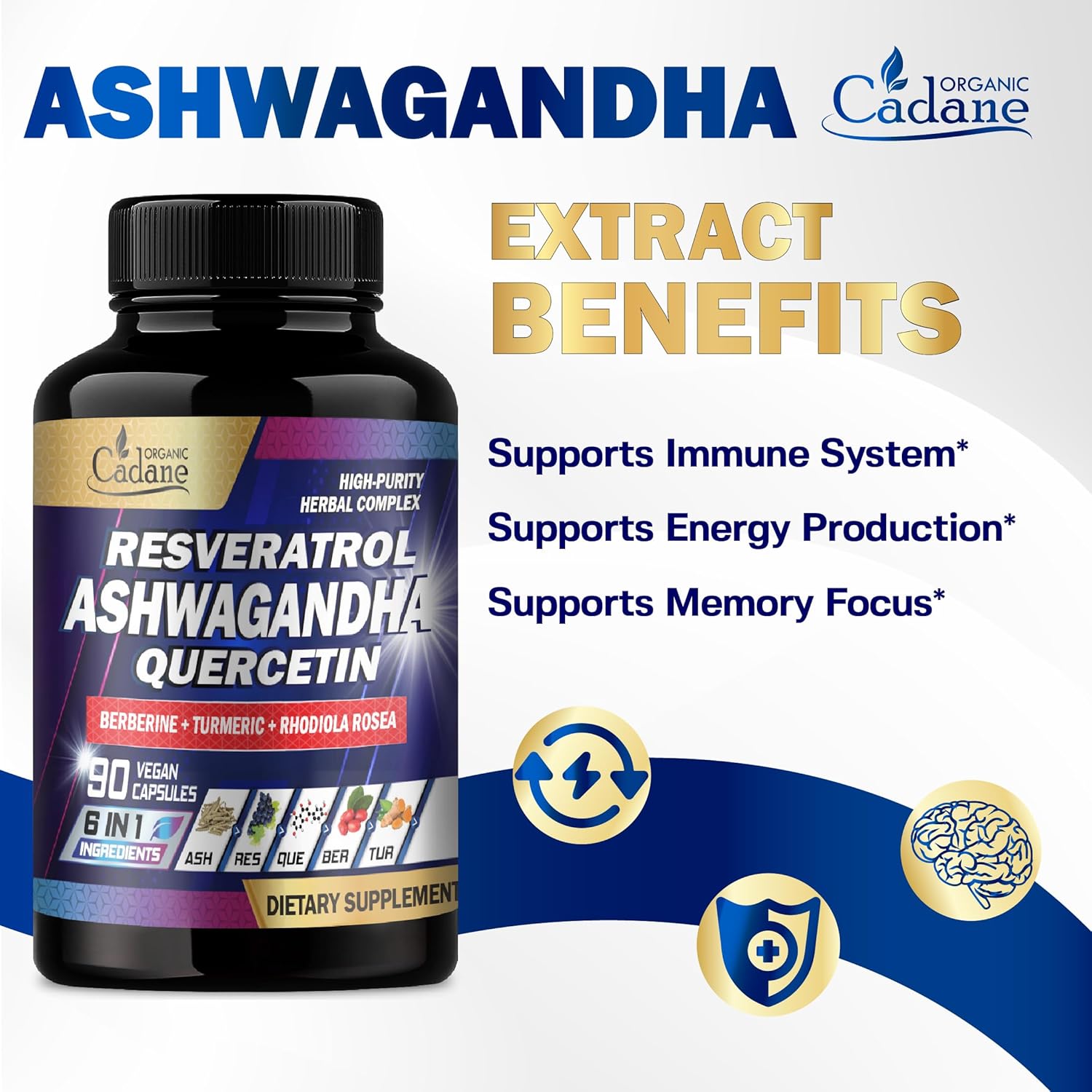 ✨ Experience the extraordinary benefits of our Ashwagandha Complex with a potent blend combination of Ashwagandha Root, Resveratrol, Quercetin, Berberine, Turmeric, and Rhodiola Rosea. Products with optimal formulas offer you a start to your day full of energy.