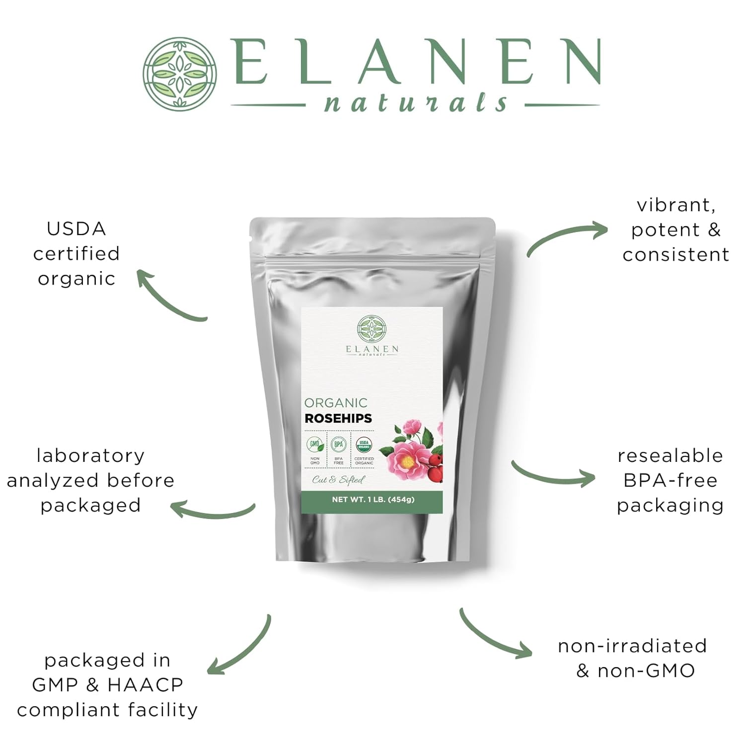 USDA Organic, GMP Compliant & Quality Controlled: Our rosehup crushed rosehips are packaged in our FDA registered, GMP & HACCP compliant facility in Southern California.
