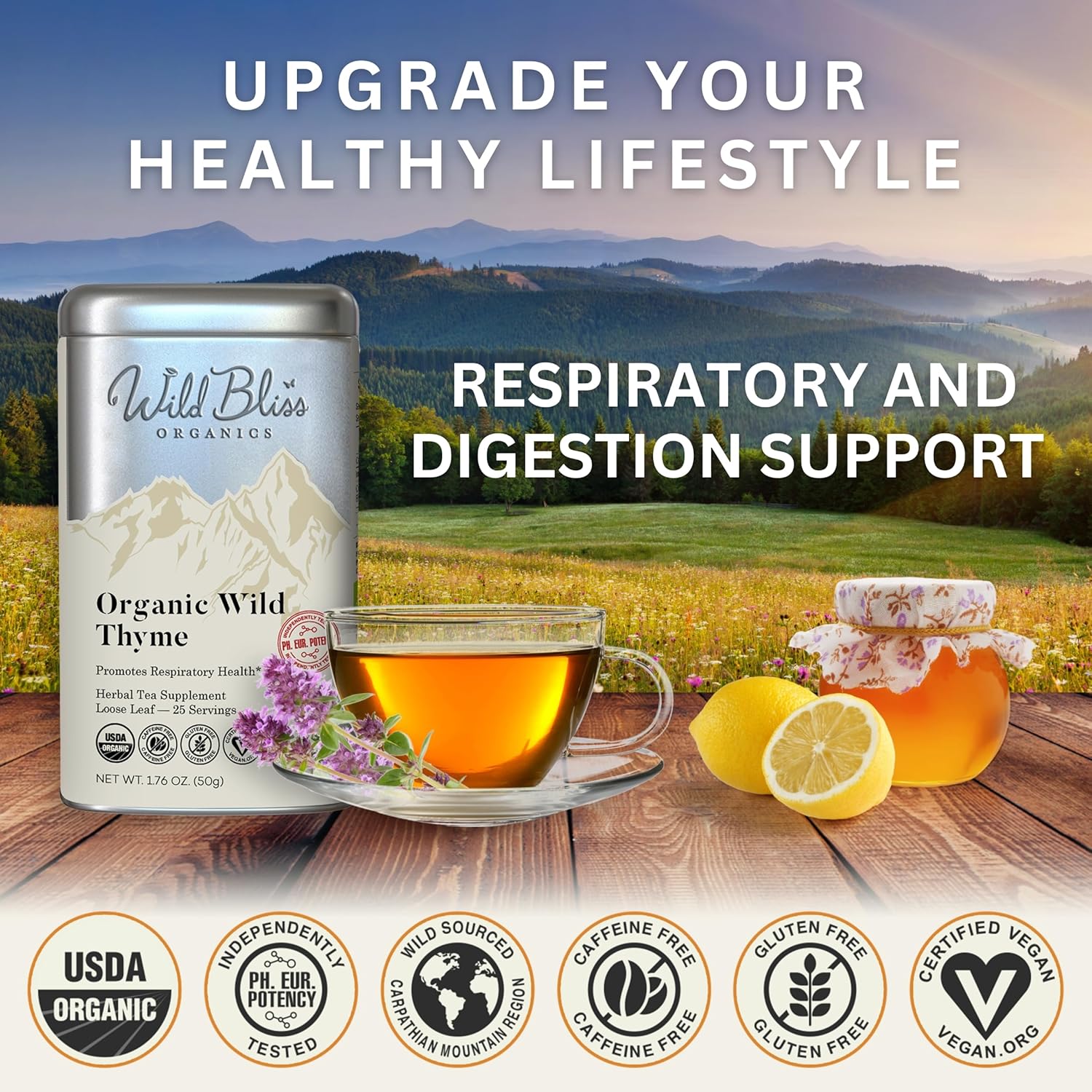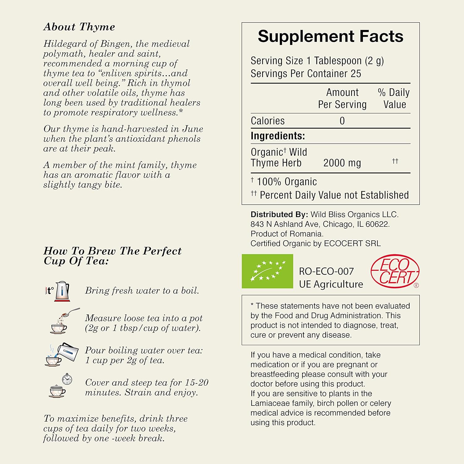 PURE ORGANIC WILD THYME; Avoid harmful agricultural chemicals in your tea; Wild Bliss tea is free from highly processed ‘natural’ flavors, additives, or preservatives