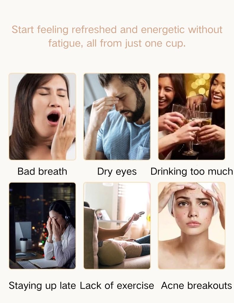 Suggestion long-term drinking can keep away bad temper, acne, dry mouth, bad temper, loss of appetite, sore eyes.