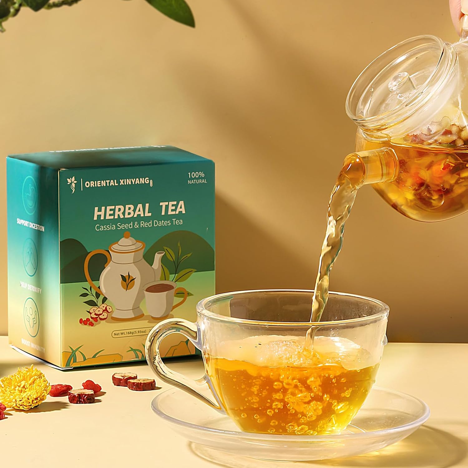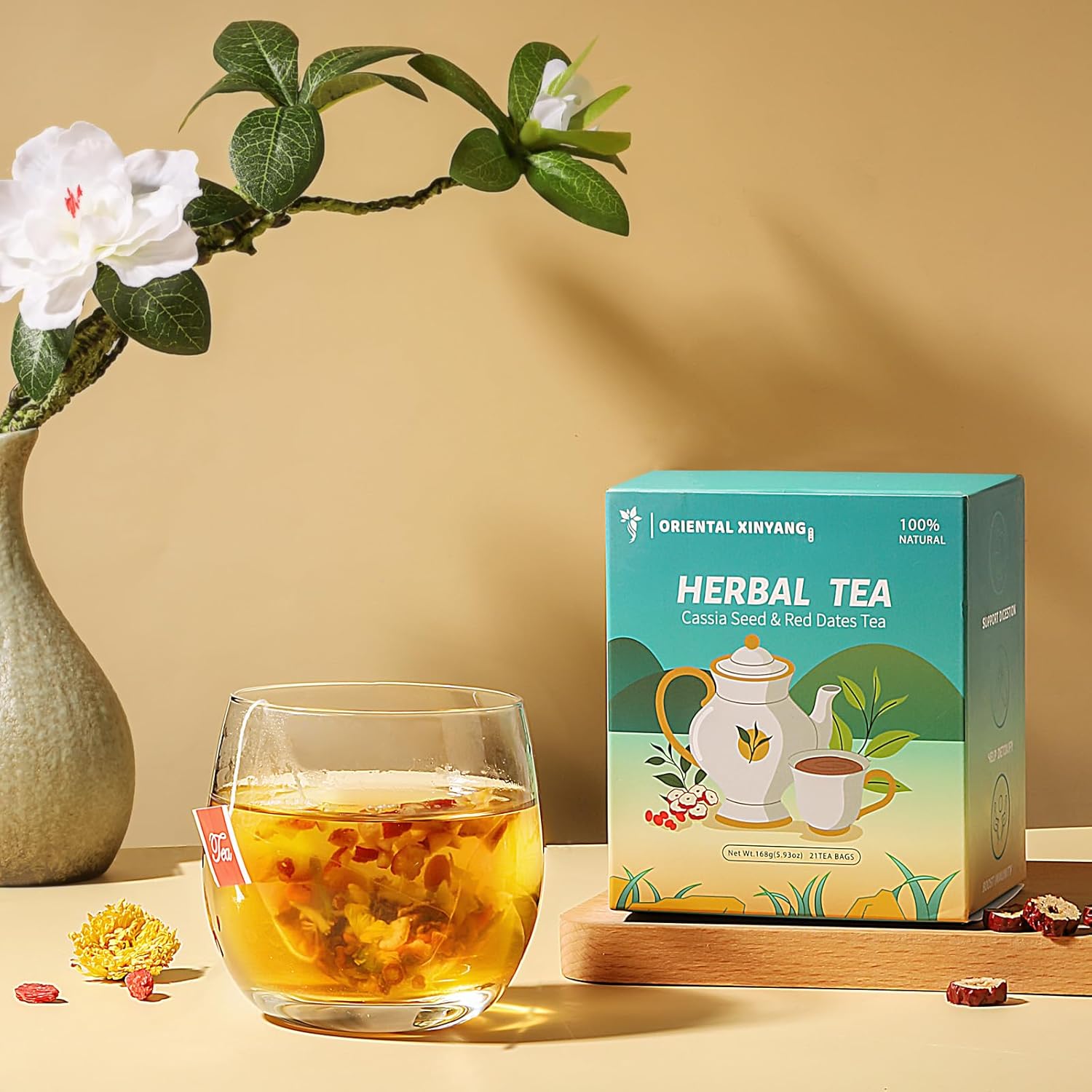 ORIENTAL XINYANG- Cassia Seed & Red Dates Tea bags, 21 Teabags 9 Flavors Liver Care Tea, Herbal Tea for Liver – Non-GMO – Caffeine-free-Nourish and Support Your Liver Health