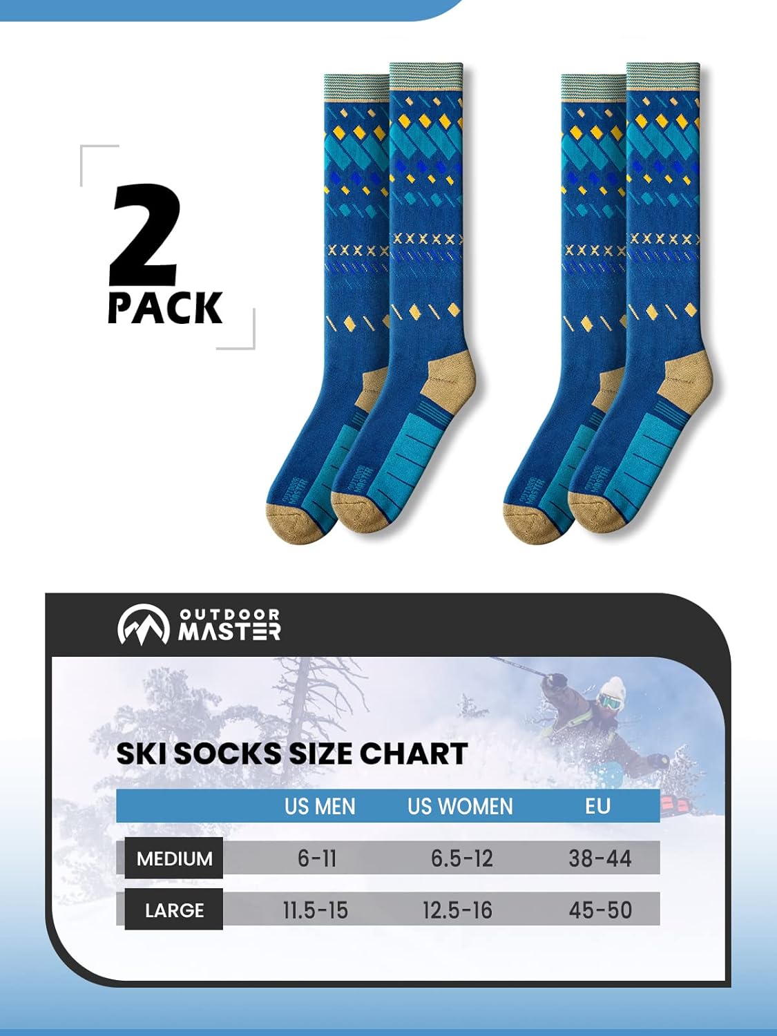 What You Get: OutdoorMaster 2 Pairs of OutdoorMaster Ski Socks, our CUSTOMER-FAVORITE 6-month warranty and friendly customer service.