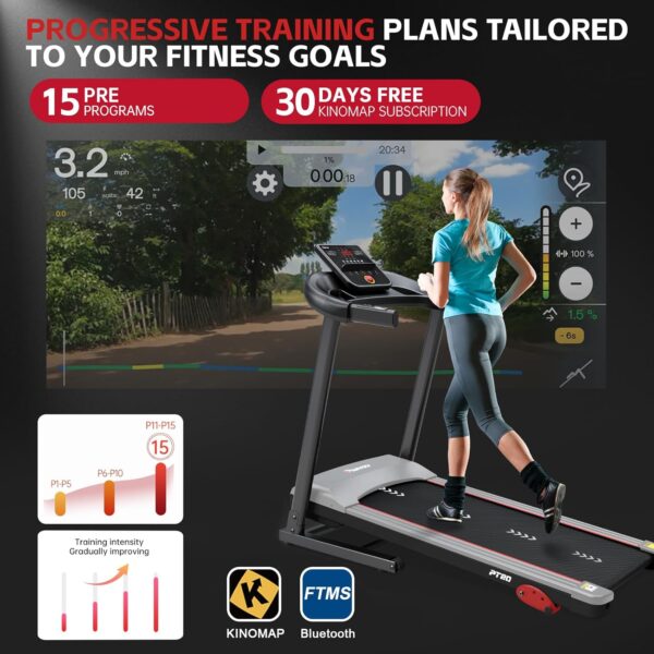 【Connect To Your Favorite Fitness Apps & 30 Days KINOMAP Subscription】-Connect the treadmill to KINOMAP or other APP, allowing you to track your progress. We offer PASYOU trainers an extended 30-day Kinomap subscription,including a free 14-day trial, totaling 44 days of full access