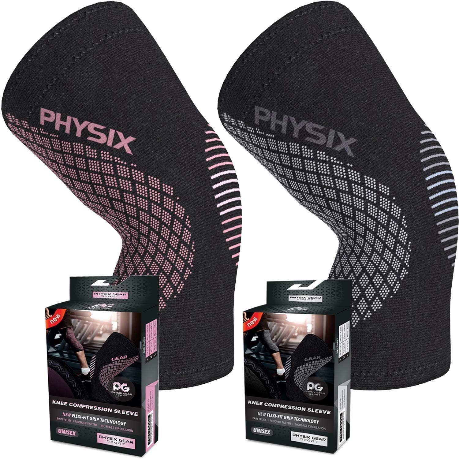 BECAUSE PAIN RELIEF CAN’T WAIT – Feel the Advantage of new four-way stretch Fabric, with the perfect blend of breathable Nylon and Lycra. Get ahead of the Game with “Physix Flexi Knitting”, Designed to support your Knee, allowing full range of motion. Physix sleeves are snug, providing excellent support for all strenuous activities. And unlike other difficult to pull on Braces, Your Physix Knee Sleeves slide into place easily, & won’t slip, constructed with an all-new No-Slip Silicone Grip Wave.