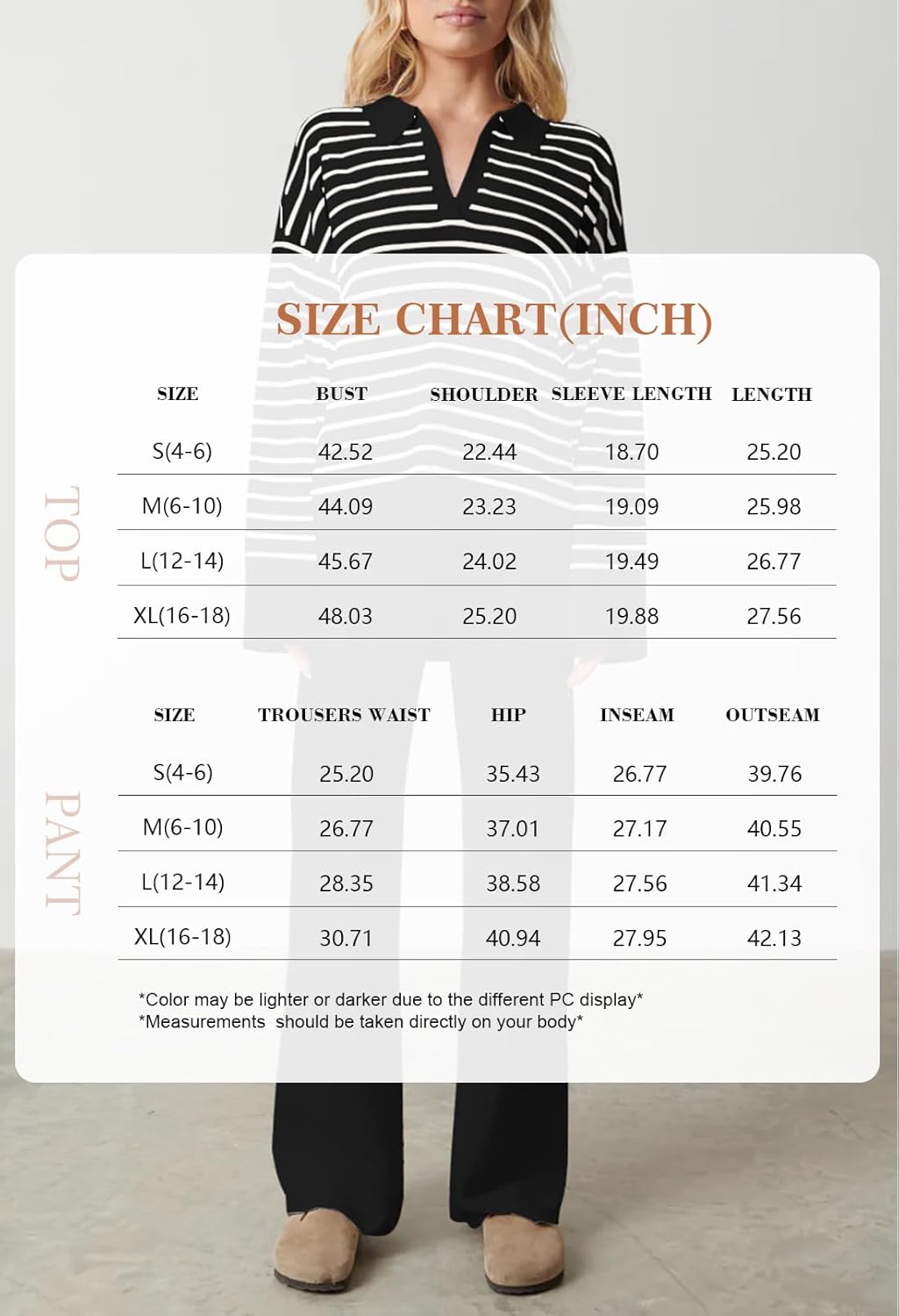 Size Chart of Pink Queen Women Sweater Outfit Set Pink Queen Collar V Neck Striped Sweater SetPink Queen Collar V Neck Striped Sweater Set
