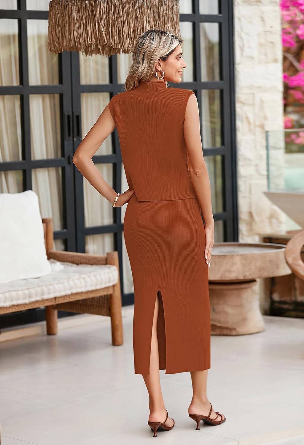 Pullover top: mock neck sleeveless crop sweater top, sexy and stylishMaxi long skirt: High waisted, bodycon fit, elastic waistband, back slitribbed