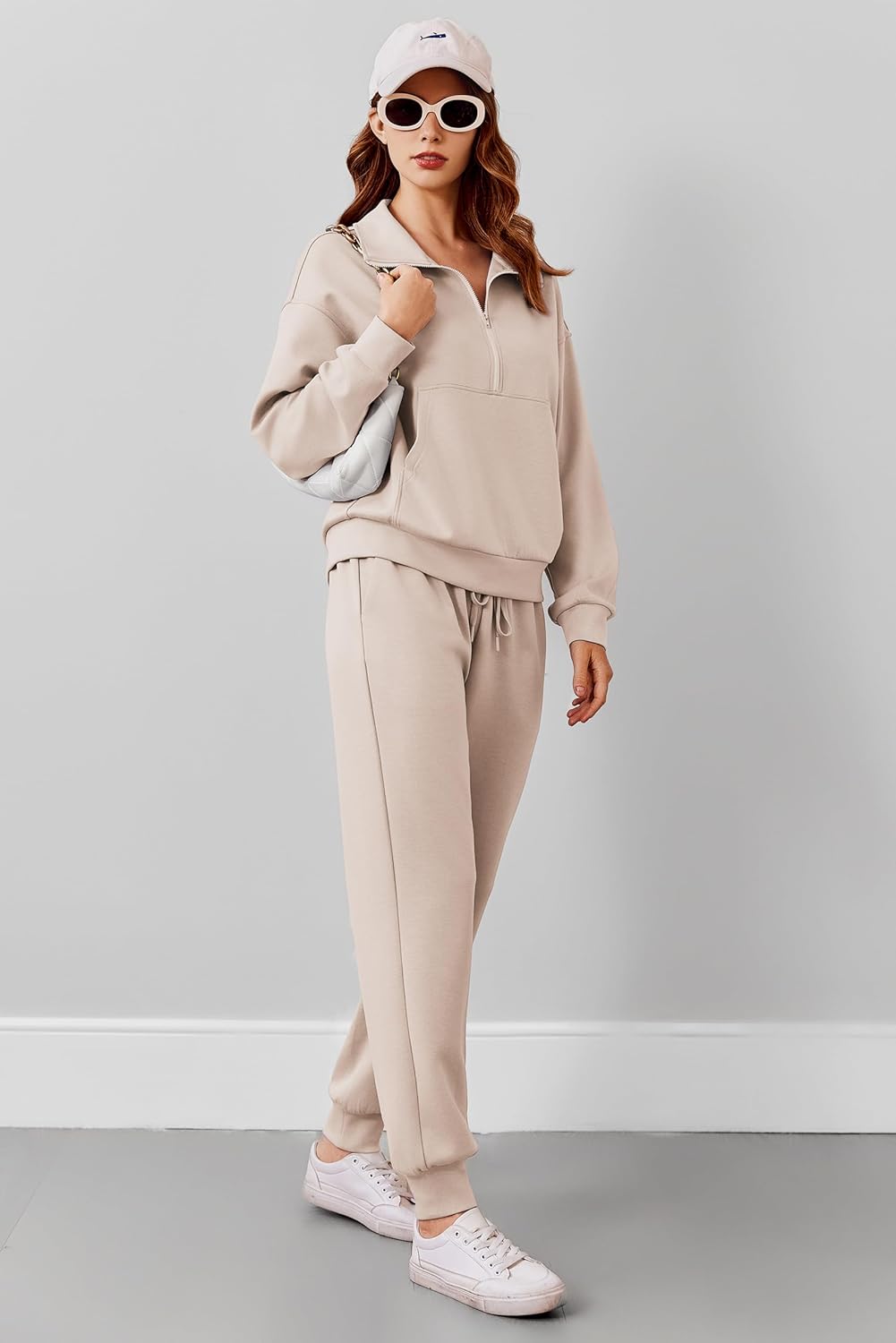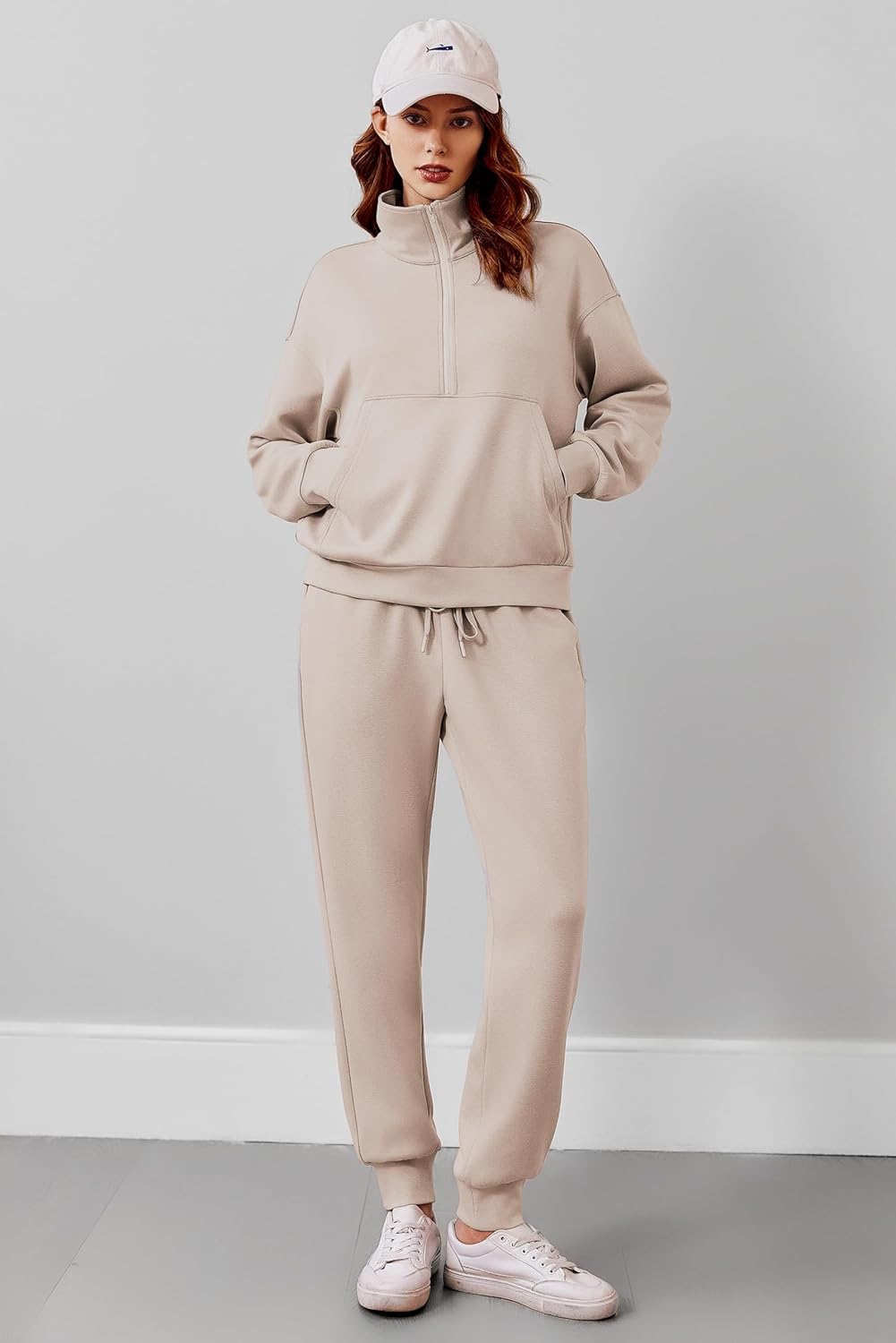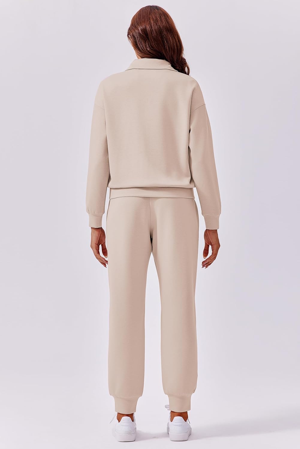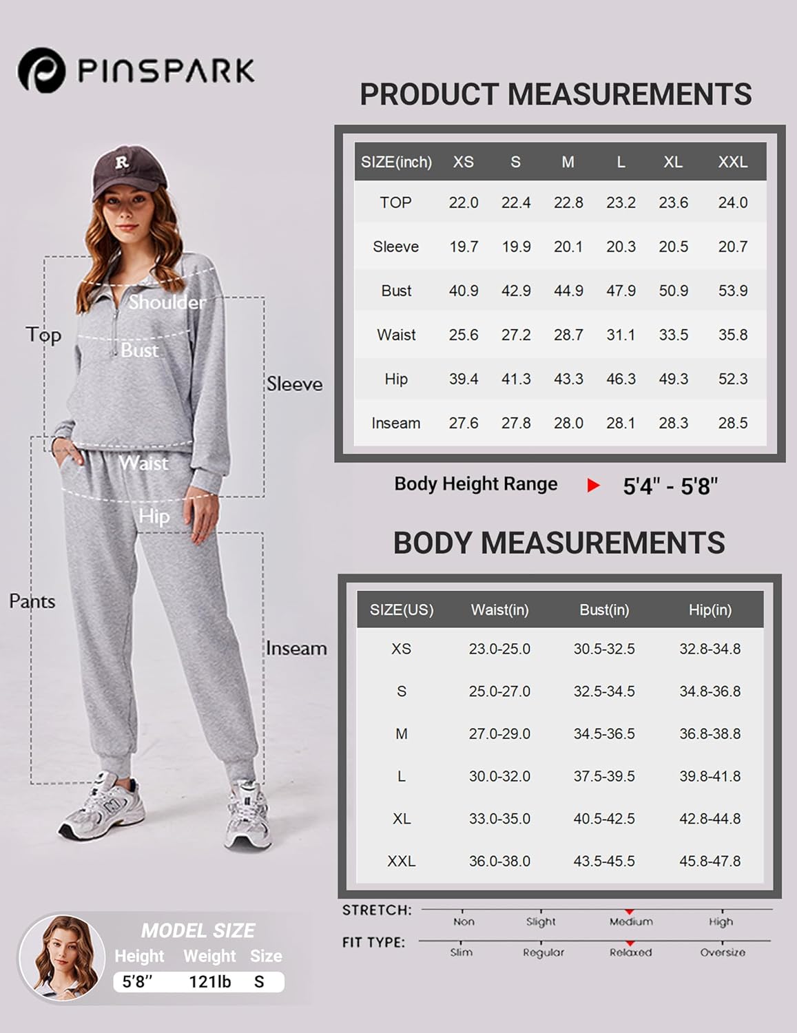 PINSPARK 2 Piece Outfits for Women 2024 Fall Half Zip Sweatshirt Jogger Sets