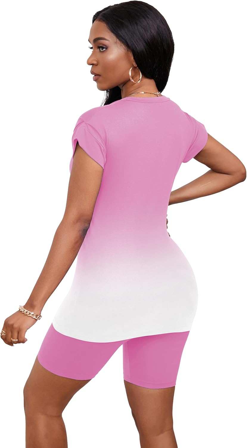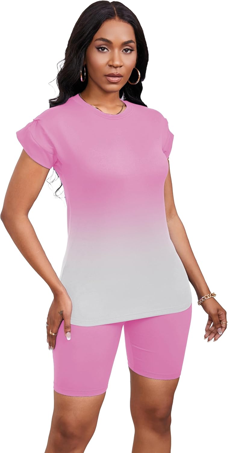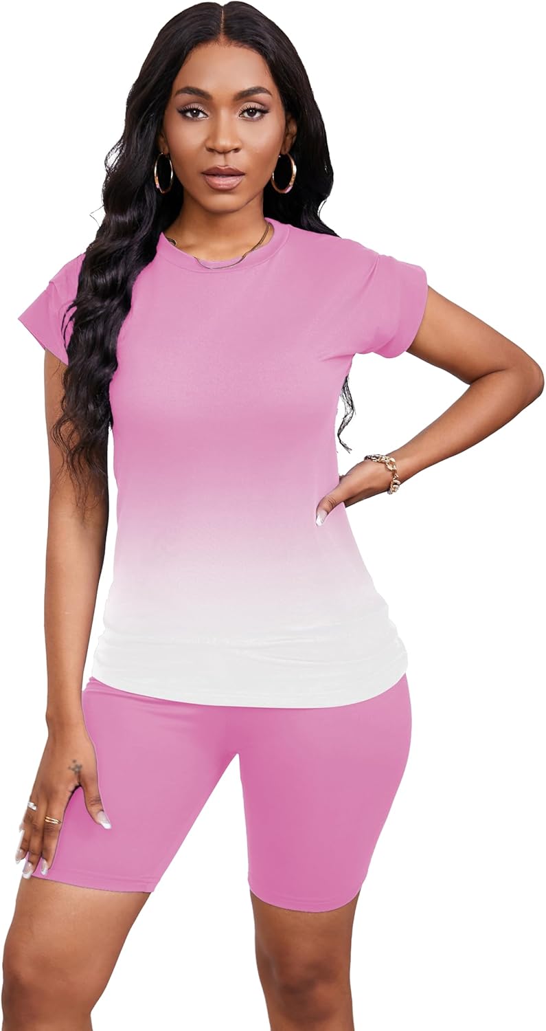Women 2 Piece Outfits Summer Sweatsuits Biker Workout Jogger Sets