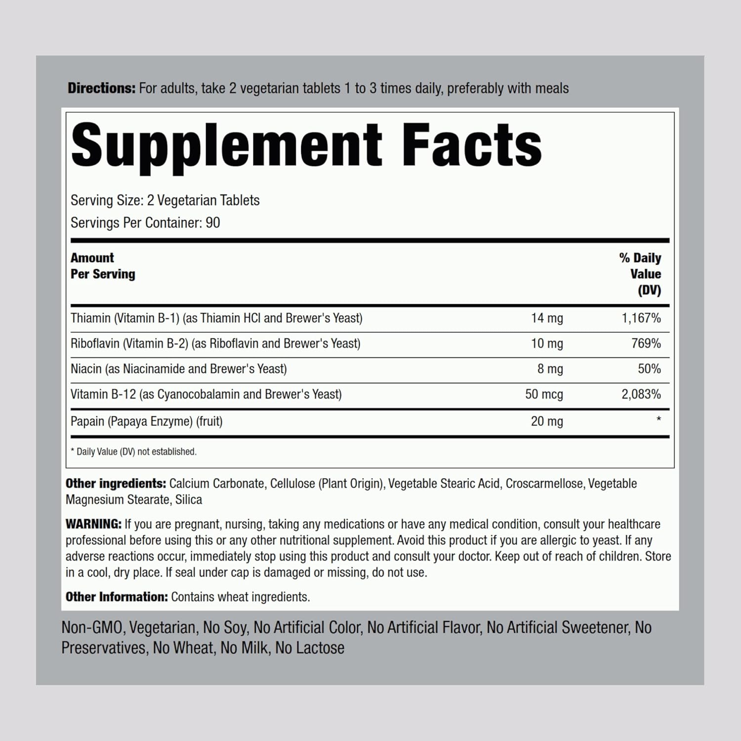 That’s why we’ve created our fast-dissolve tablets with B Complex Plus 50 mcg of Vitamin B12 (as cyanocobalamin and Brewer’s Yeast). Our super high potency formula has Thiamin, Riboflavin, Niacin, and Papaya enzyme included that work synergistically within your body. Grab a bottle and enjoy the benefits of this quality supplement today!