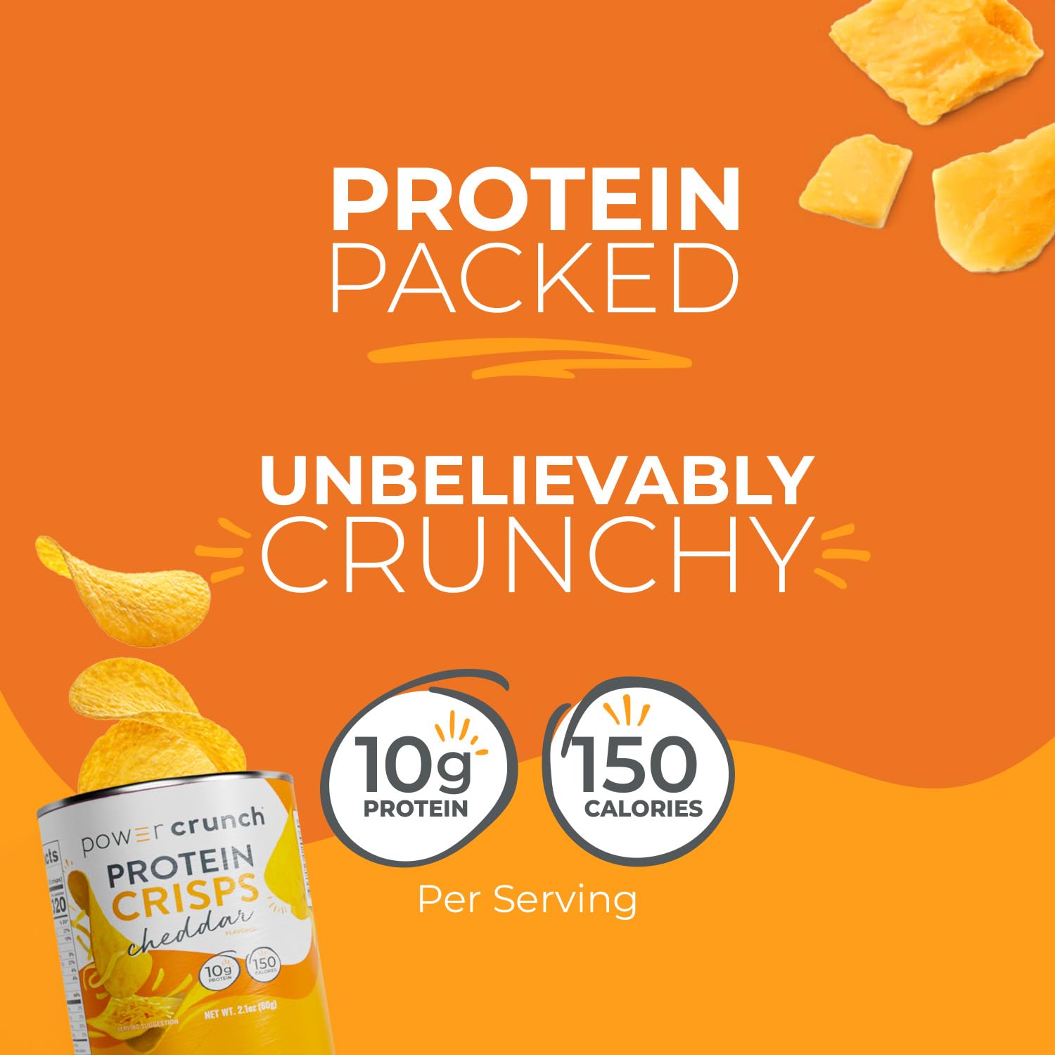 SALTY & CRUNCHY: The Power Crunch Cheddar high Protein CRISPS are seasoned to perfection while also providing a chip-like crunch that’s impossible to resist.