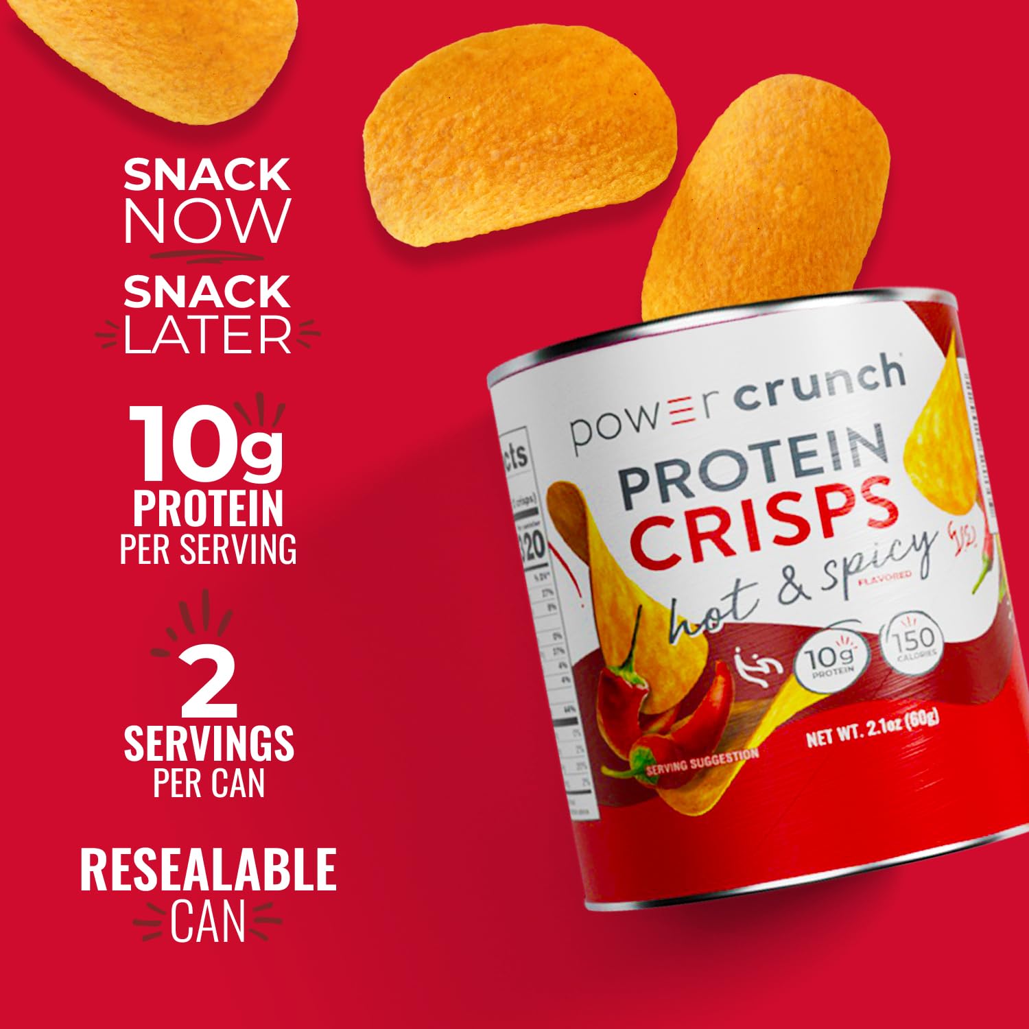 PERFECT POTATO CHIP ALTERNATIVE: The Power Crunch Protein Crisps provide all the crunch and satisfying taste of a regular chip but packed with protein. With 10 grams of protein per serving (2 servings per can), you can feel good about eating Power Crunch CRISPs.