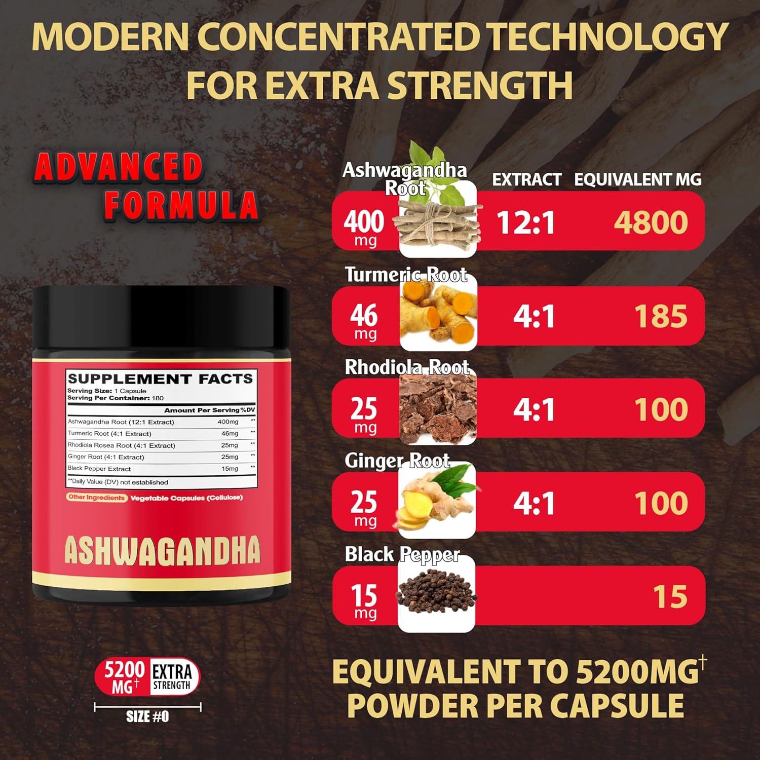 ✅ Experience the power of Ashwagandha with our potent blend, delivering 5200mg per serving, complemented by Turmeric Root, Rhodiola Rosea Root, Ginger Root, and Black Pepper.