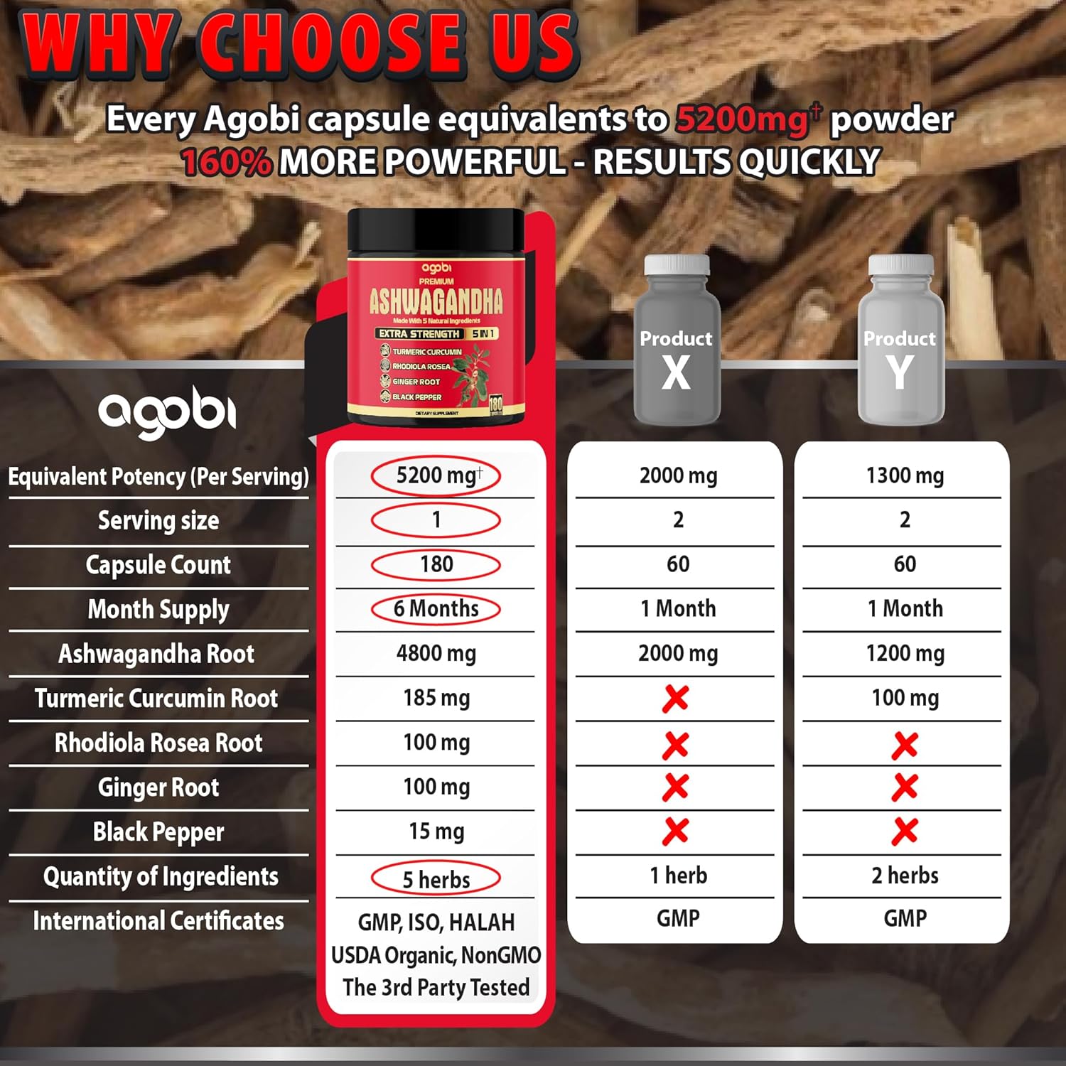 ✅ Agobi Herbal Ashwagandha Supplements are made by cGMP, ISO, and FDA-registered manufacturer. Gluten-free, non-GMO, plant-based, keto-friendly, vegan. Quality assured by USA lab.