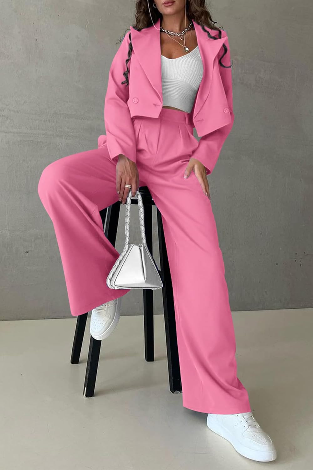 The Combination Of The Blazer Jacket And Wide Leg Pants Creates A Chic And Trendy Look That Is Perfect For Any Occasion.