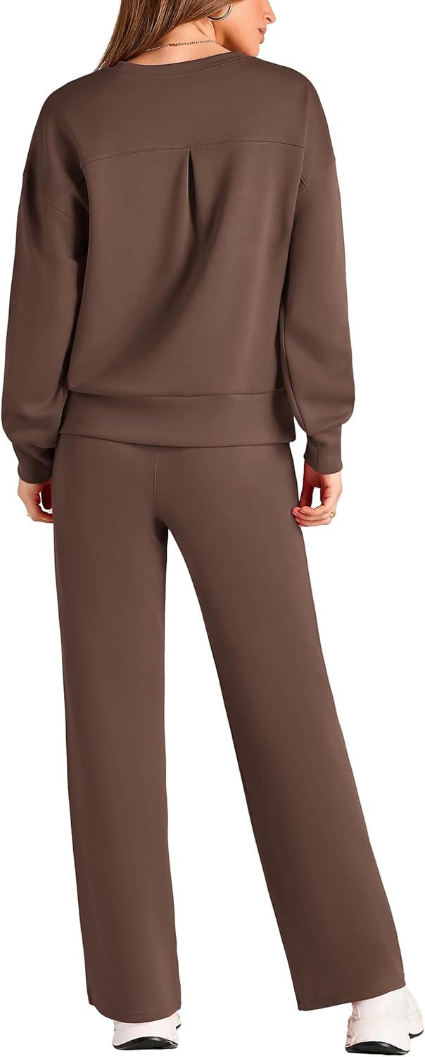 PRETTYGARDEN 2 Piece Outfits For Women Crewneck Tops And Palazzo Pants Sets