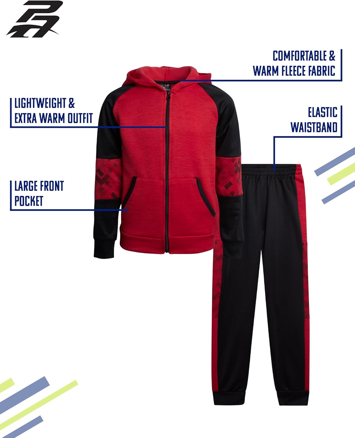 Pro Athlete Boys’ 2-Piece Athletic Fleece Jogger Set is a high quality and comfortable set of kids’ winter activewear. The classic sports themed design is a great choice for kids of any age. A perfect gift idea for the holidays, birthdays, or any kind of celebration, the jacket and pants combo is available in a variety of cool designs and in many sizes.