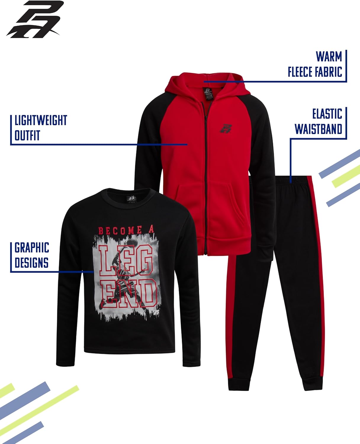 Pro Athlete Boys’ Jogger Set – 3 Piece Fleece Sweatsuit Kids Clothing Set (Size: 8-16)