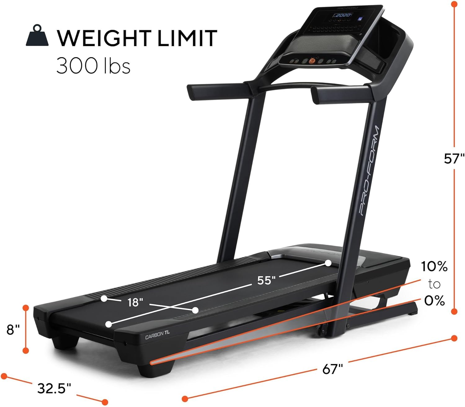 ProForm Carbon TL; Treadmill for Walking and Running with 5” Display, Built-in Tablet Holder and SpaceSaver Design