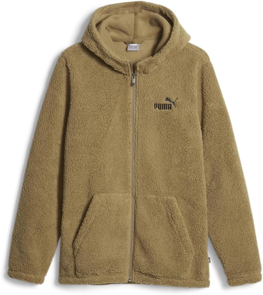 Puma Mens Essential Elevated Sherpa Full-Zip Hoodie Casual Outerwear Casual Pockets – Brown