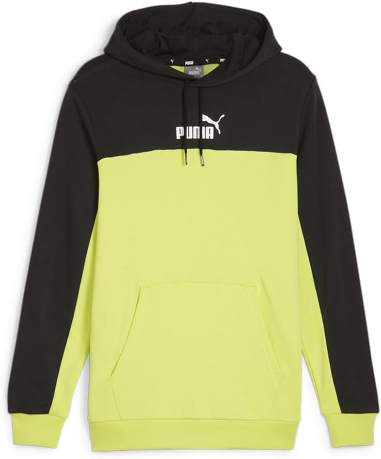 Puma Mens Essentials Block Hoodie Casual Outerwear Casual Hoodie Drawstring – Black, Yellow