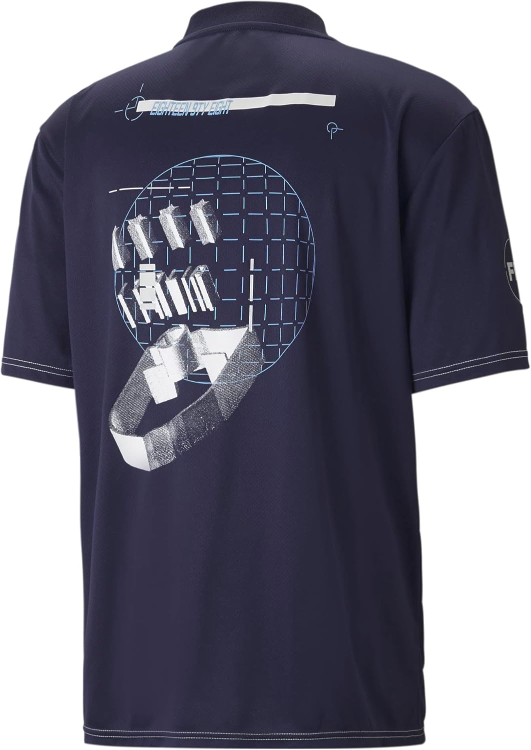 Team jersey with graphic 3D intepratation of club crest and PUMA Logo, made of 100% Recycled Polyester.