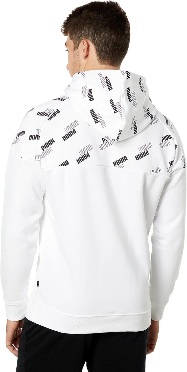 Keep cozy at all times wearing this PUMA Power All Over Print Fleece Hoodie. Hooded construction with drawstring closure. Full sleeves with elastic cuffs. PUMA written at the upper half. PUMA branding at the pocket. Kangaroo pocket. Ribbed cuff hemline. 67% cotton, 33% polyester. Machine wash, dry flat.