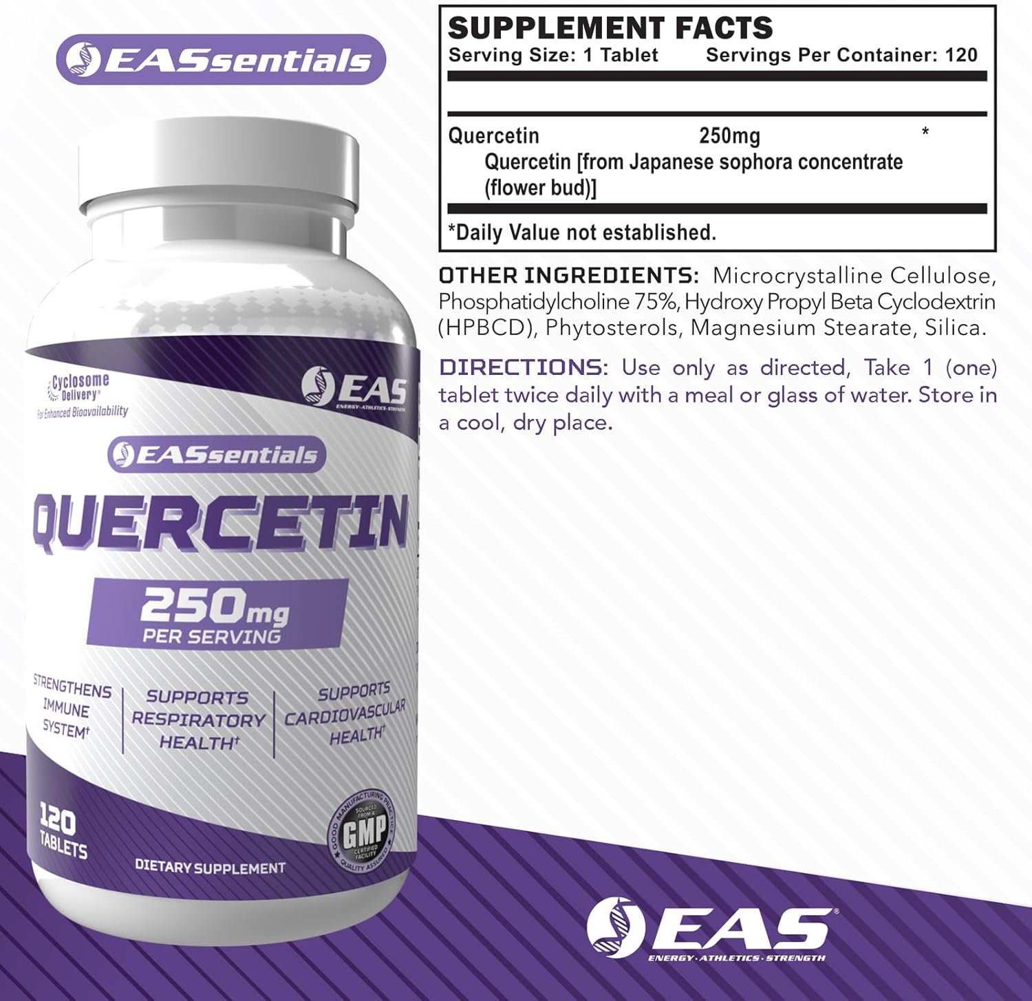 Quercetin 250mg | Heart & Respiratory Health | Supports Immune Response | Gluten Free, Non GMO | Better Absorption with Cyclosome Delivery | 120 Tablets