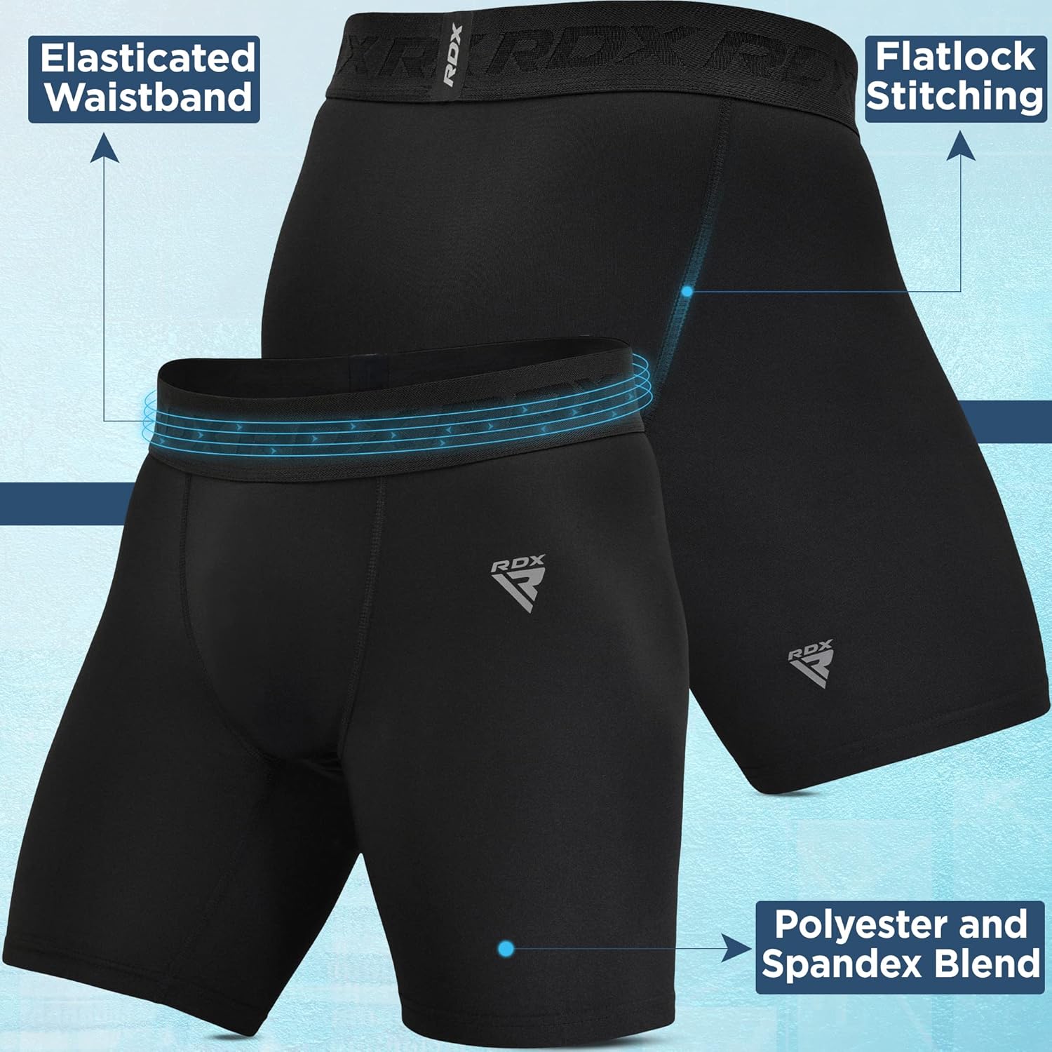 FORM-FITTING COMPRESSION SHORTS Looking for the ideal workout shorts? Be ahead of the game, the RDX form-fitting compression shorts are made with a blend of polyester and spandex fabrics that makes them exceptionally durable and reliable. Provide your limbs the compression support and stability they need while cycling, surfing, running, or for an ideal workout or training session.