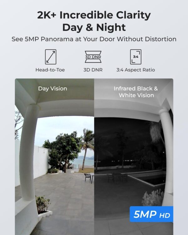 5MP Super HD with Head-to-Toe-Viewing: Incredible 5MP HD and 3:4 aspect ratio, along with advanced 3D DNR and distortion correction technologies, bring you the full picture with sharp and detailed images day or night.