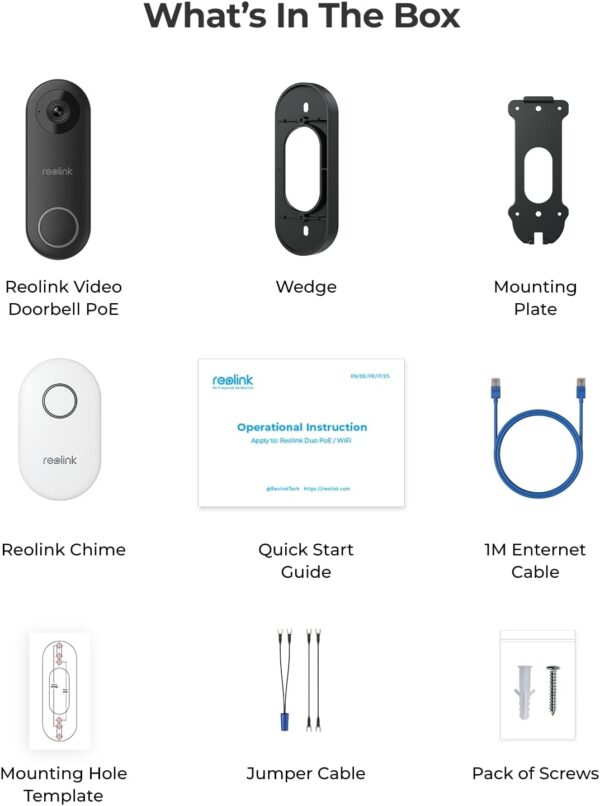 Chime V2 Included & Answer the Door Faster: Plug the chime included into any electrical socket in any room and be confidently alerted when visitors “knock”. You can choose 1 of its 10 tunes and adjust its volume. You can also preset voice messages or automatic replies for times when you’re occupied. Chime Compatibility: Reolink Chime-V2.