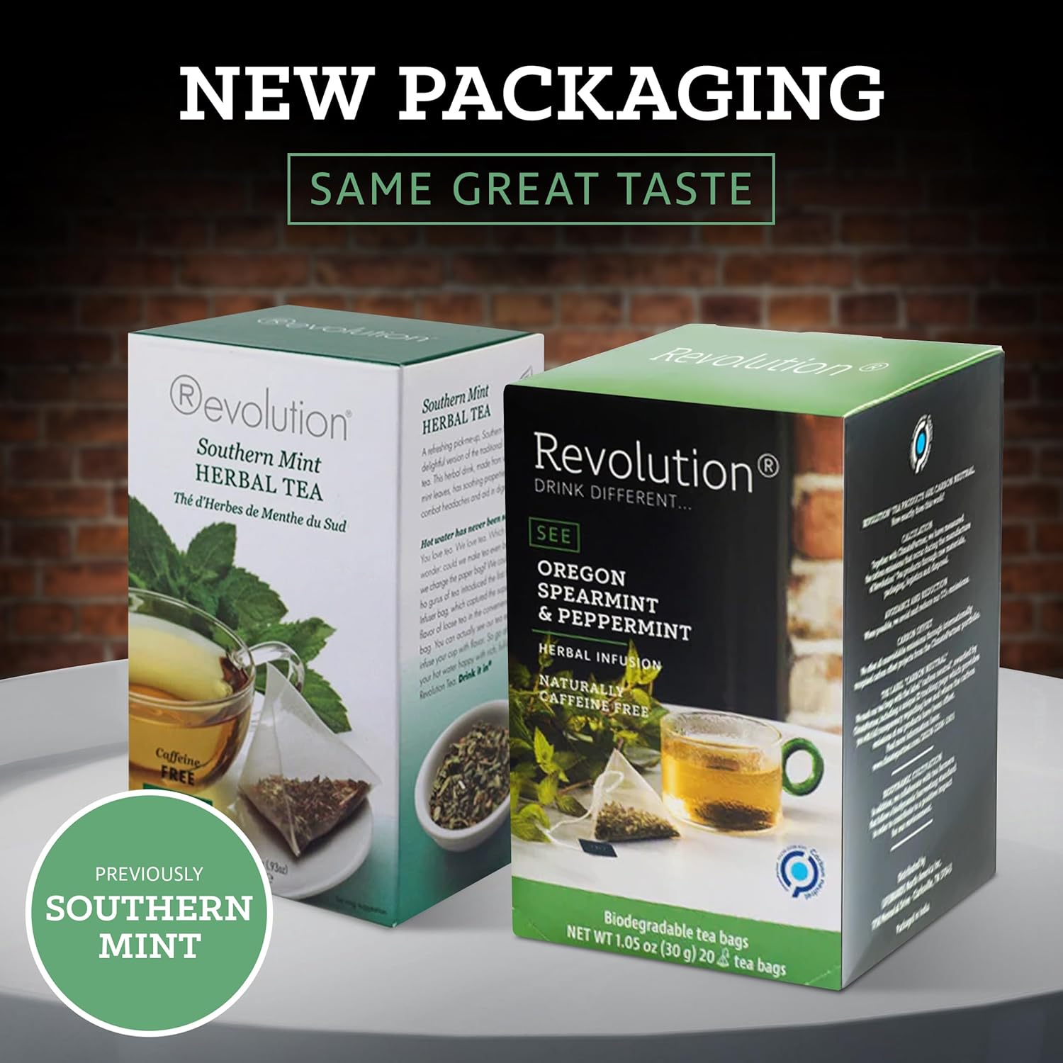 REVOLUTION TEA® Southern Mint [THE ORIGINAL] – Oregon Spearmint & Peppermint – Premium Full Leaf Tea – Biodegradable Infuser Tea Bags – Herbal Tea – Naturally Caffeine Free – 20 Bags
