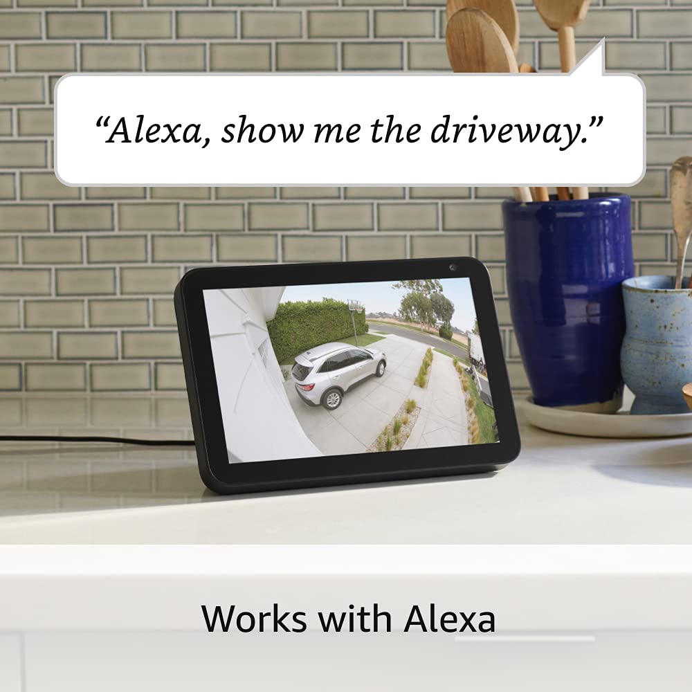 For added peace of mind, pair with Alexa to help you keep an eye on your home. Connect with Alexa to hear motion alerts on your compatible Echo device or see a Live View with an Echo Show, Fire TV, or Fire Tablet. Talk to visitors by saying, “Alexa, talk to the front door.” With a Ring Protect plan (subscription sold separately), Alexa can also make voice announcements and automatically show live video feed on an Echo Show, Fire TV, or Fire Tablet when your Ring Floodlight Camera detects a person.