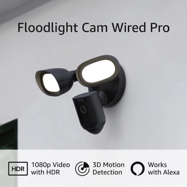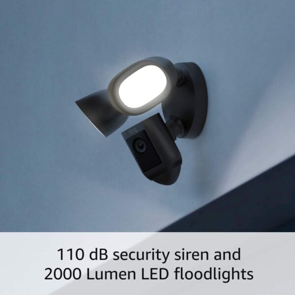 1080p HD security camera with motion-activated LED floodlights, Two-Way Talk and Audio+, 3D Motion Detection, HDR, and a built-in 110 dB security siren