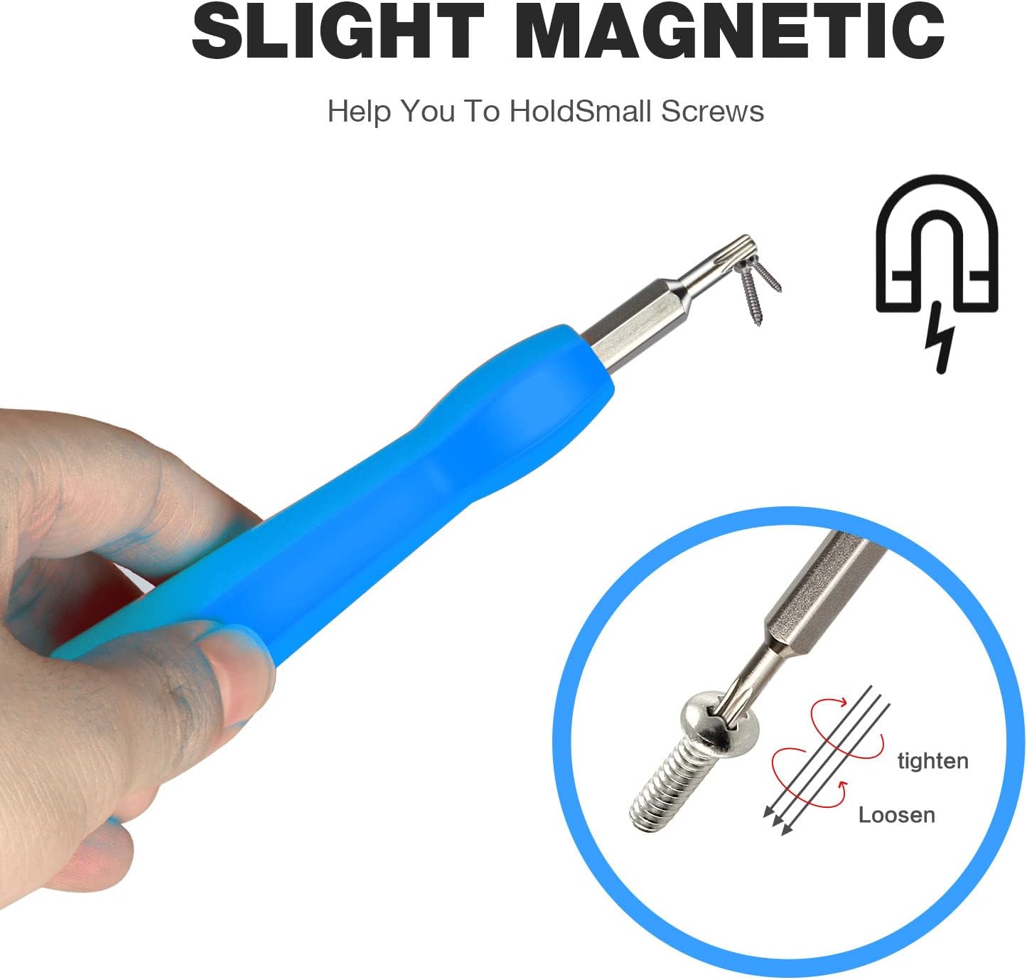 【Durable Construstion】: Ergonomic grip for repeated use,convenient to hold in hand and rotate,durable for long time use. Light magnetic to hold small tiny screws.