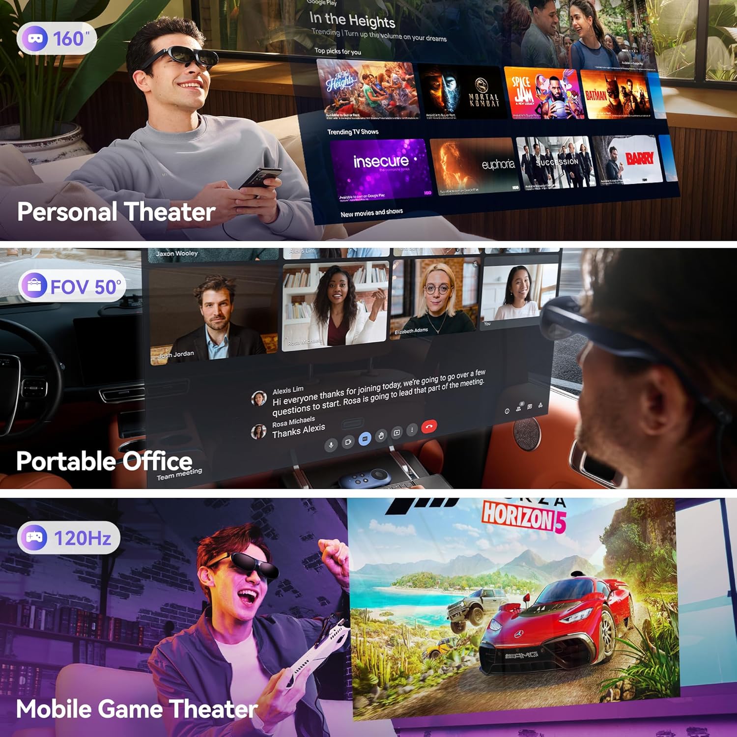 A Game-changing experience: Battle your enemies on the big screen wherever you are, with lasting comfort. Plus, Rokid Max glasses work with almost any console. *Compatible with iPhone 15, Switch, Steam Deck, PS4 Slim/5, and Xbox Series X/S.