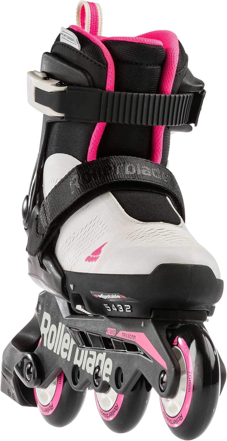 Microblade Free is a high-quality lace-free adjustable skate. Using Rollerblade expertise, skates are adjustable four full sizes. An easy-to-use extension system works with the push of a button and markers in the toe area align the skates to the correct size. Junior Fit support includes an engineered mesh for breathability and provides enhanced comfort. A durable frame design lowers the center of gravity to improve stability, balance and control. 76mm Performance wheels/SG3 bearings are ideal for kids and upgrading to a faster Microblade 3WD can be achieved later by purchasing larger wheels; brake is standard. Microblade FREE 3WD is the frustration-free choice for kids.
