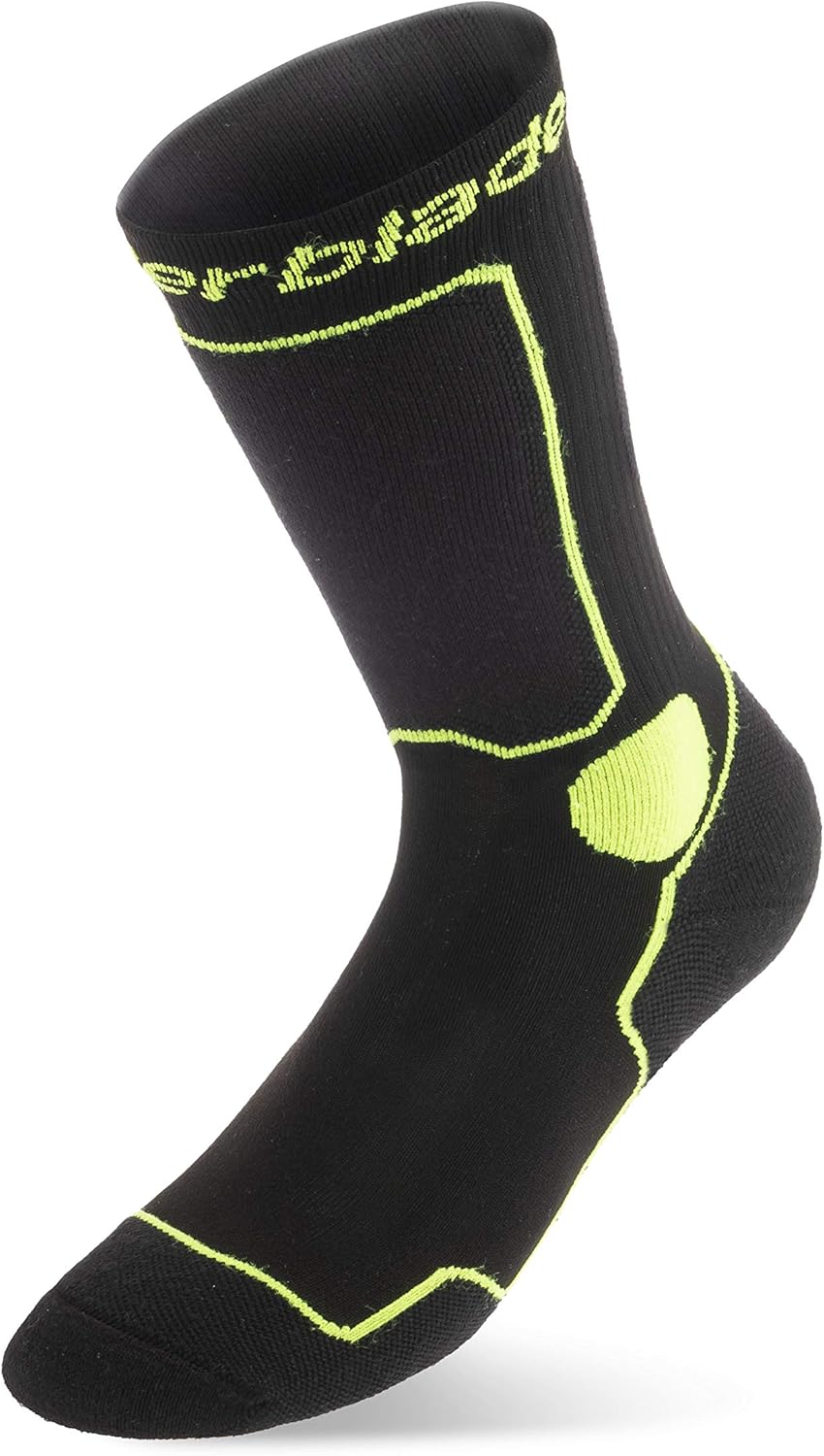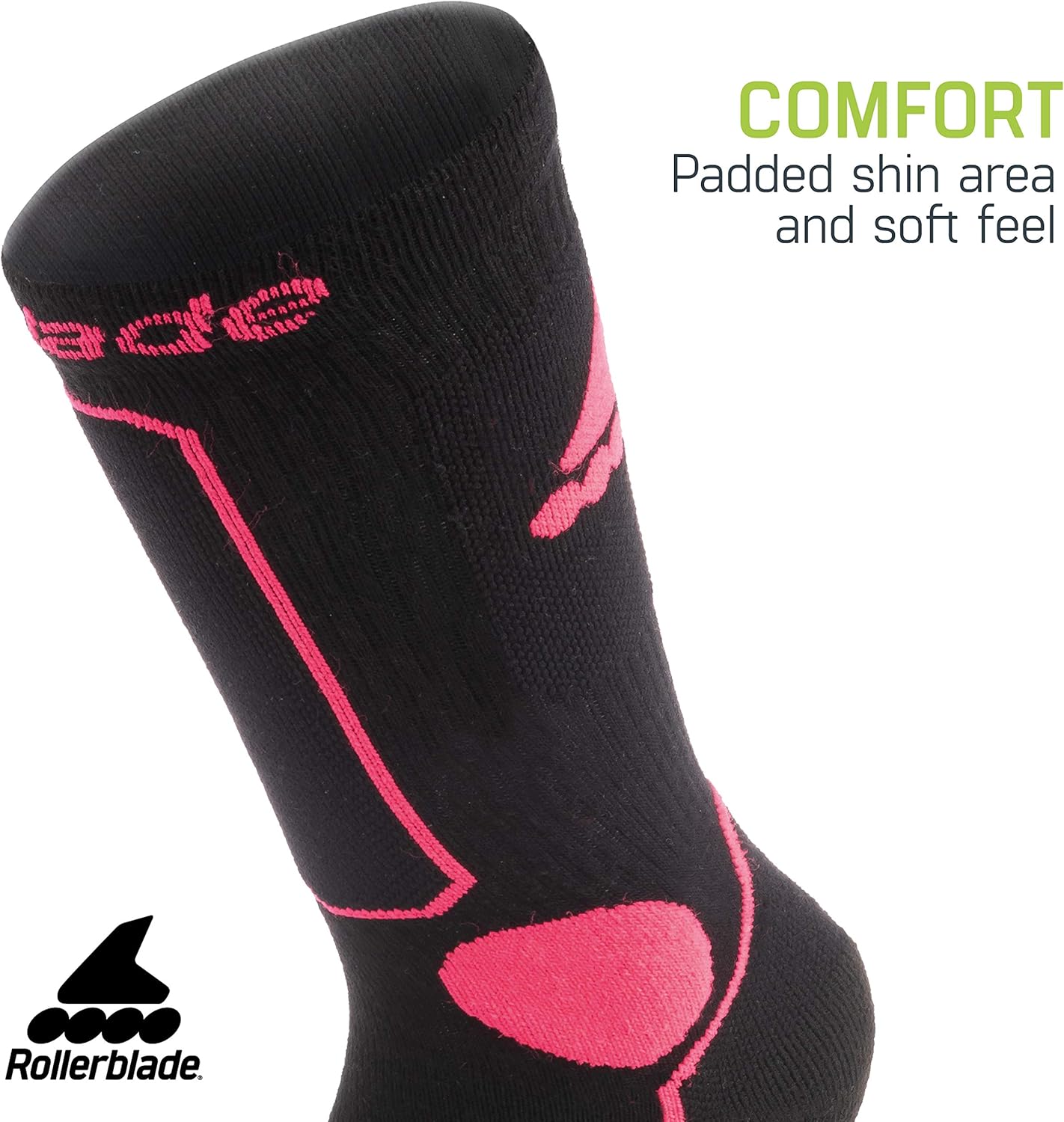Better socks make skating better. The Skate Socks are specifically for skating with optimal materials and features to ensure incredible fit and performance. The pique construction and double pique shin area provide all around comfort and reinforcement in the areas where the feet may feel the most pressure. The socks are also right and left specific to optimize padding and fit when pushing off on the skates as well as in cruising mode. Select materials add soft comfort, durability and wick away perspiration to make it a good technical skating sock. Value, durability, comfort, increased shape retention and technical features make this the only thing that should come between one’s foot and their skates.