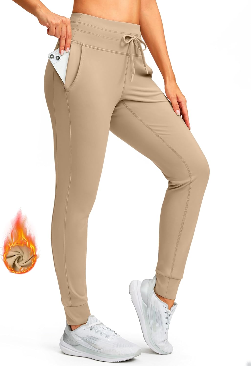 SANTINY Fleece Lined Womens Joggers with Pockets – Slim Fit Winter Running Gear