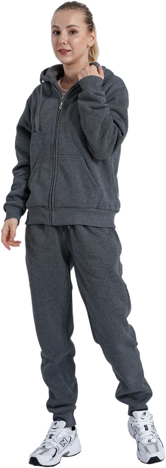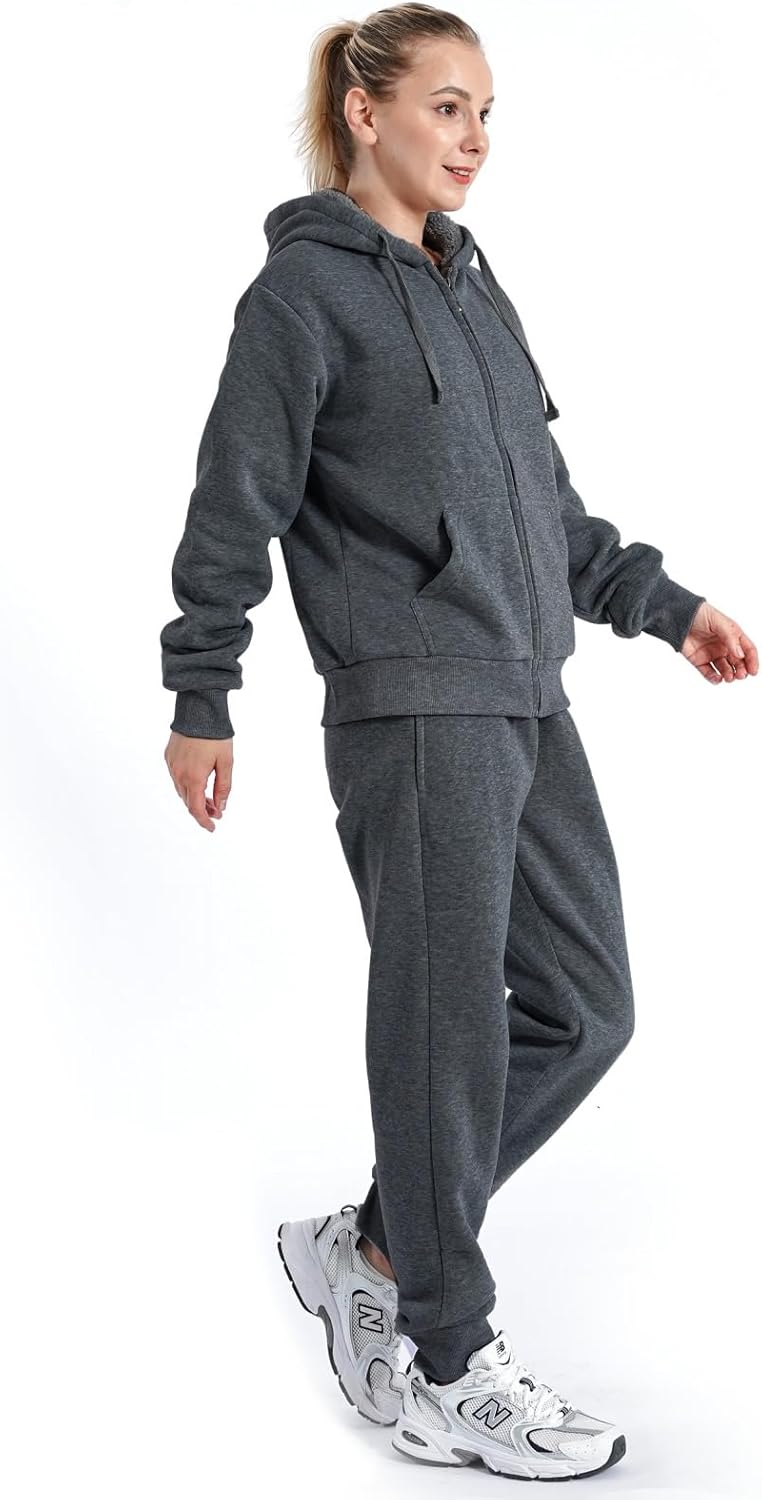Fashion Womens Sherpa Lined Tracksuit Sets & Soft Comfy Fabric Hoodie and Pants Sweat Suit