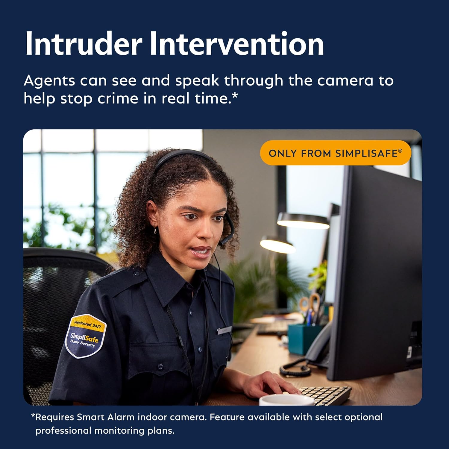 Faster police response – When you enable video verification on your SimpliSafe cameras, our professional monitoring agents can use eyewitness evidence to verify a break-in which can mean priority dispatch for faster police response. (Requires Fast Protect Monitoring plan)