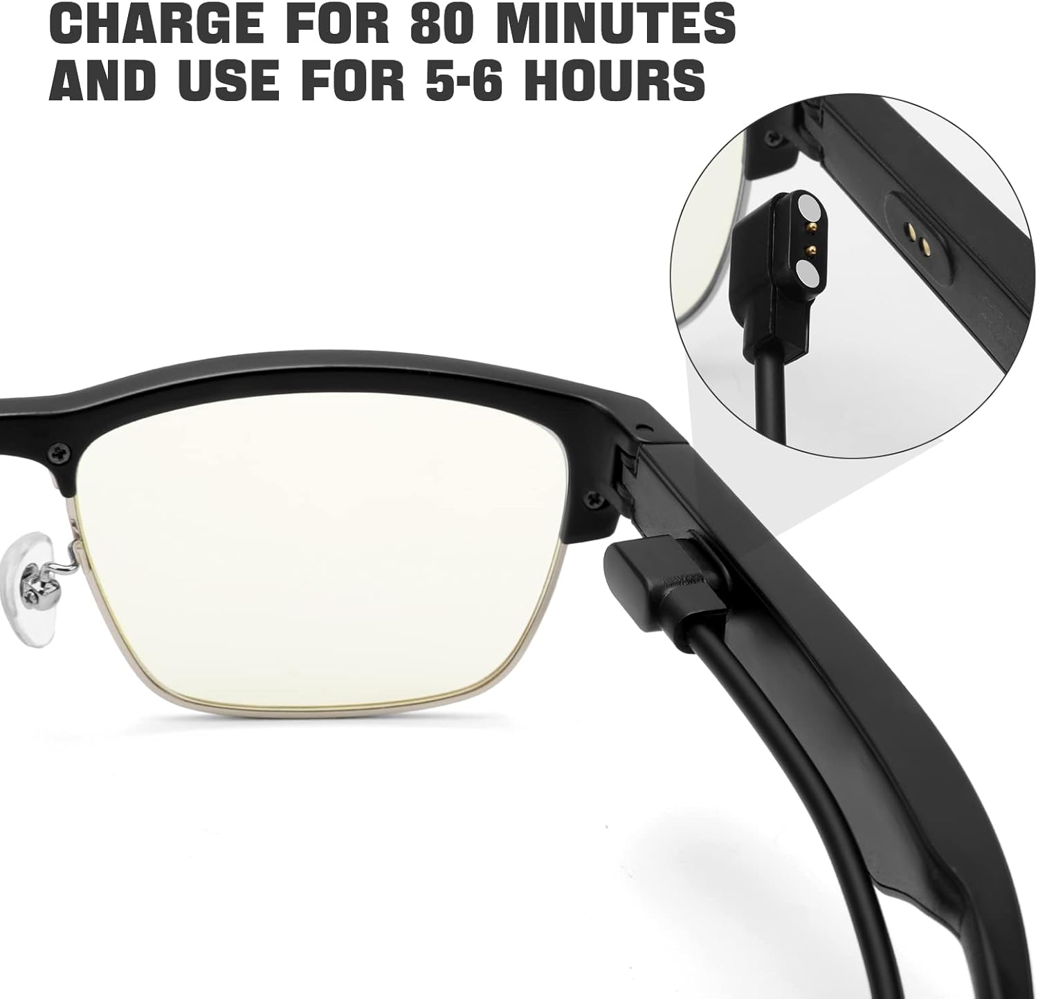 High quality battery protection board, glasses will not heat or affect charging during use,Always be listening to your favorite tunes with 5~6 hours of music playback on a full charge.