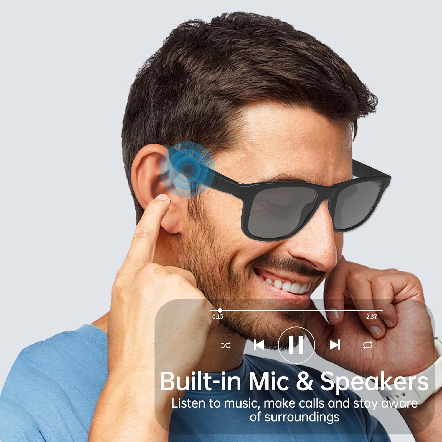 These smart Bluetooth sunglasses for men are equipped with advanced 3D stereo speakers, enhancing your auditory experience with rich and dynamic soundscapes that immerse you in every exciting moment.