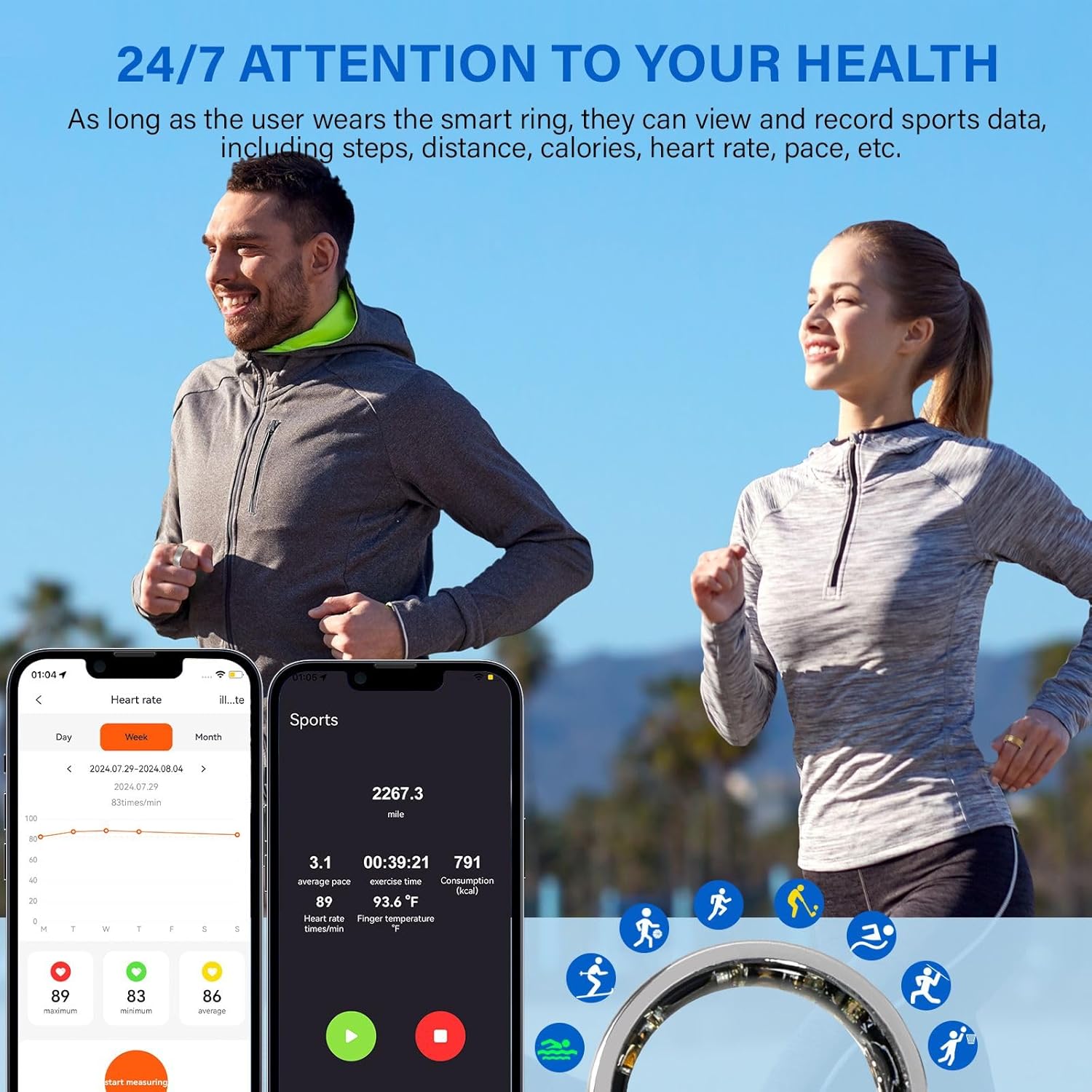 【All-round Health & Fitness Tracker】The Health & Fitness Tracking Ring can monitor key health indicators such as heart rate, blood pressure, blood oxygen, etc. It can also track step count, calorie consumption, etc., and also supports multiple sports modes such as running and climbing to help you understand your physical condition at any time.