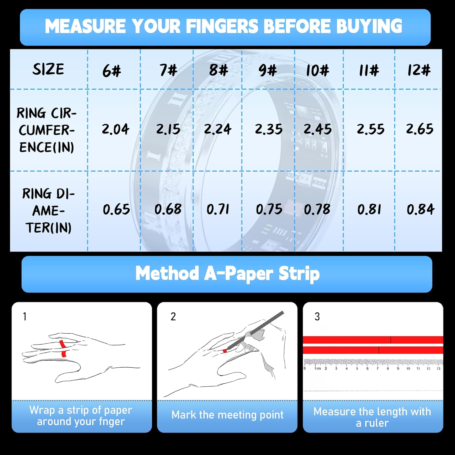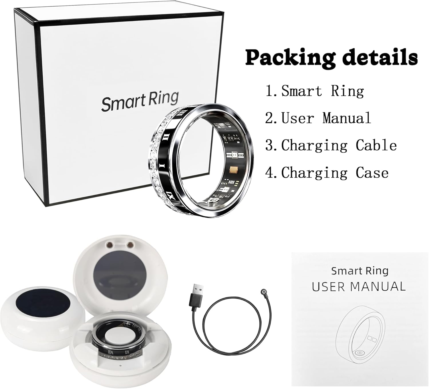【𝐒𝐦𝐚𝐫𝐭 𝐑𝐢𝐧𝐠】The smart ring fully integrates health monitoring, fitness tracking, and sleep quality analysis functions. it can monitor your heart rate, scheduled blood oxygen saturation, daily exercise, sleep monitoring and analysis 24 hours a day to ensure that you are always aware of your health status. It can accurately record your steps, distance, and calories burned, helping you scientifically manage your physical health indicators.