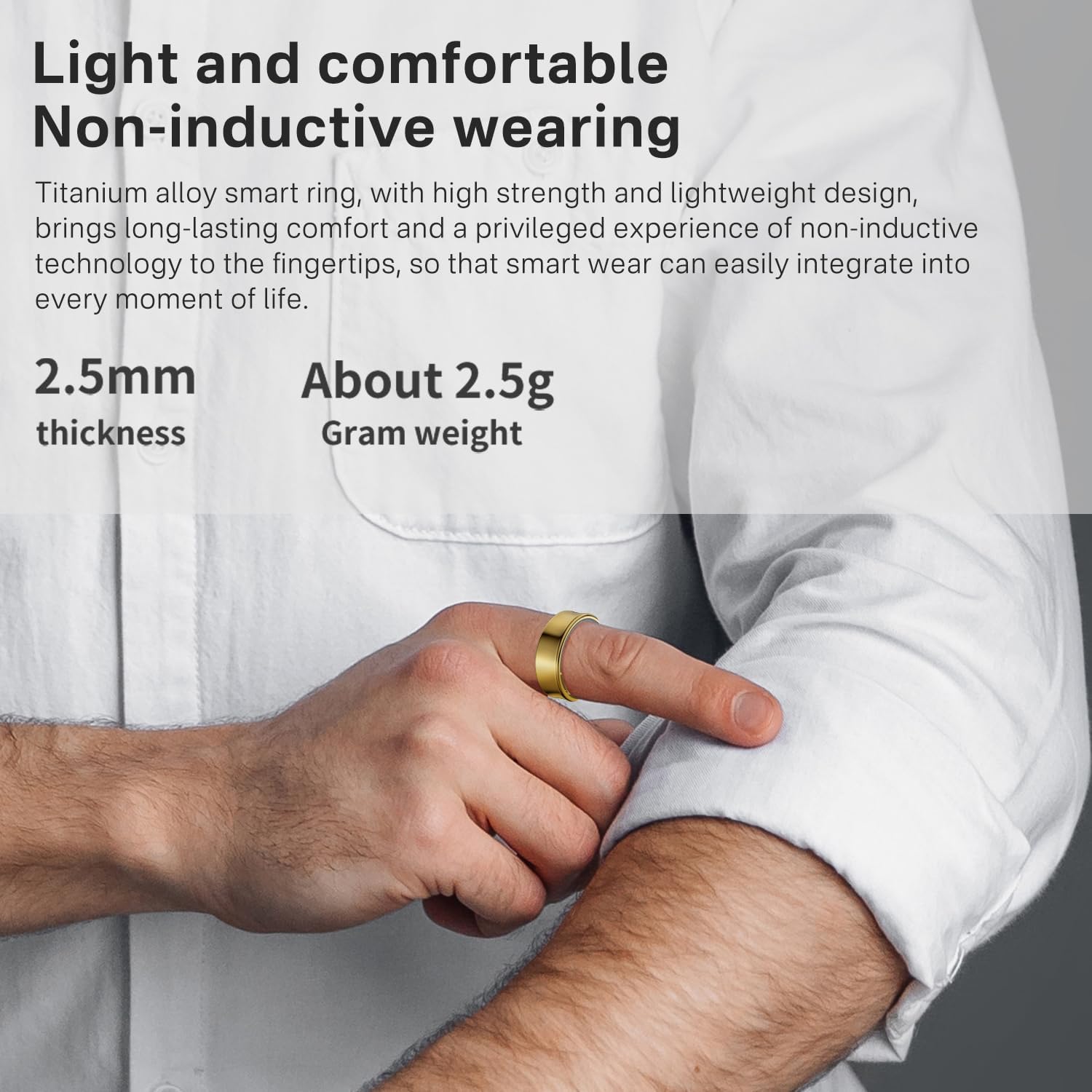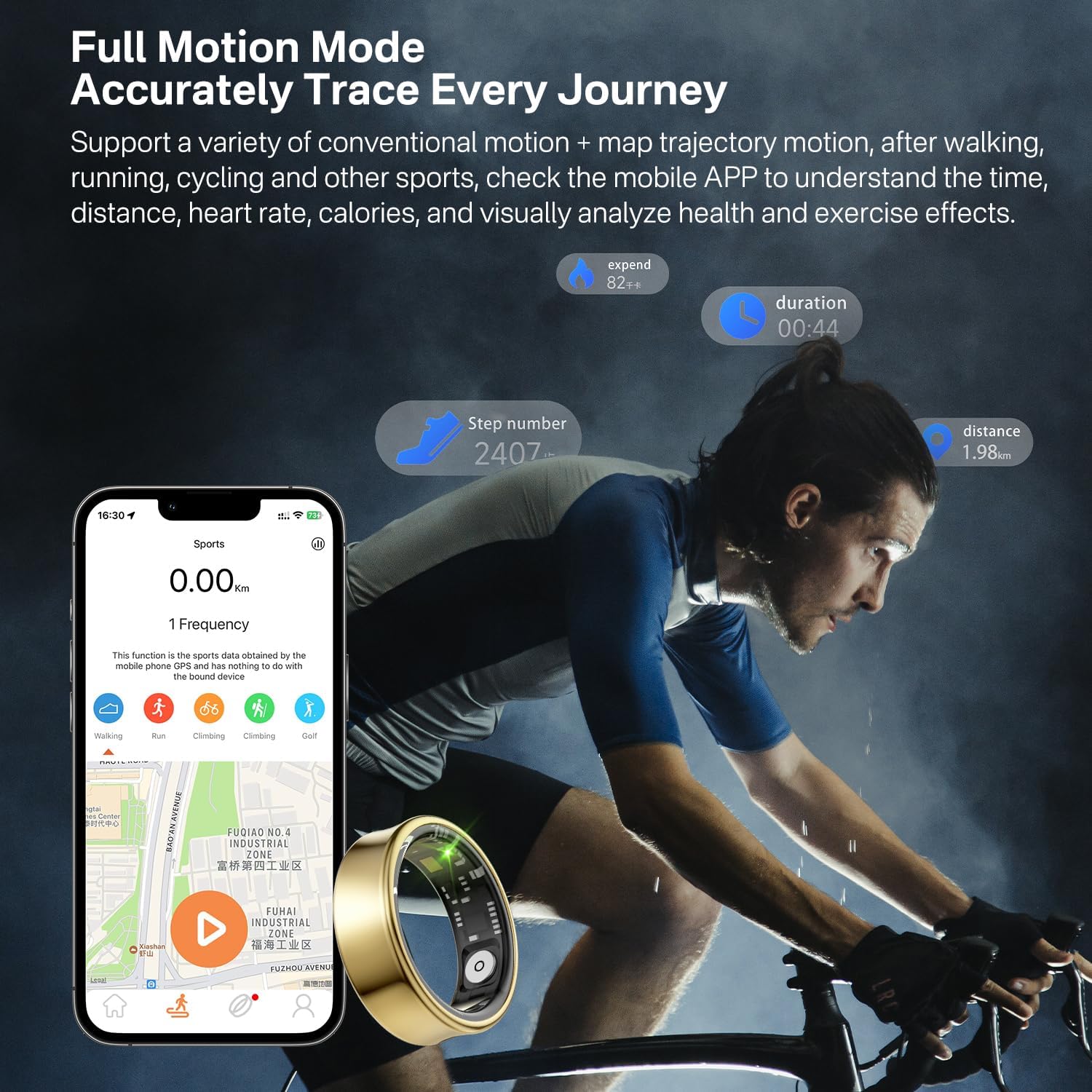[Multiple Sizes and Colors Avaliable] The smart health rings Comes in different sizes including 7,8,9,10,11 and 12, perfect for men and women with different finger sizes, and are available in gold, matte-black, matte-silver, bright silver, and deep gray, for a range of styles and looks
