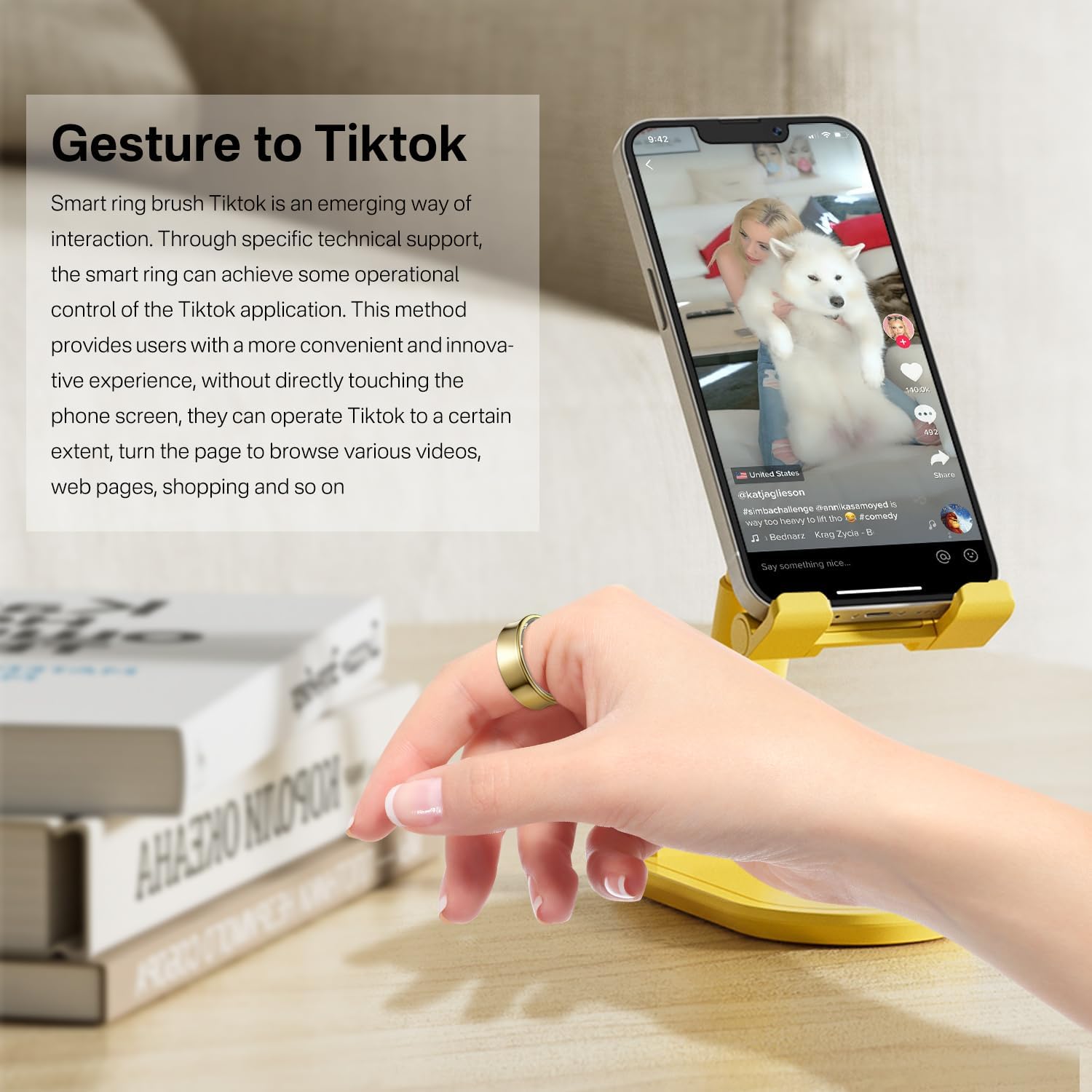 [Hand Gestures Brush Tiktok] Enjoy hands-free convenience with features to operate Tiktok and even take remote photographs using a hand gestures with the Tulbeys health tracker smart ring for iPhone and Android.