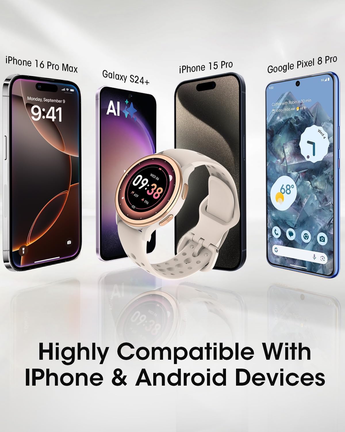 【Your Health, Always in Focus】: Meet your wellness companion that works around the clock. The smart watches for women monitor your heart rate, sleep, calories, and blood oxygen levels – all day, every day. Thoughtful women’s health features keep you informed and empowered, tracking everything from your menstrual cycle to pregnancy, providing care when you need it most.